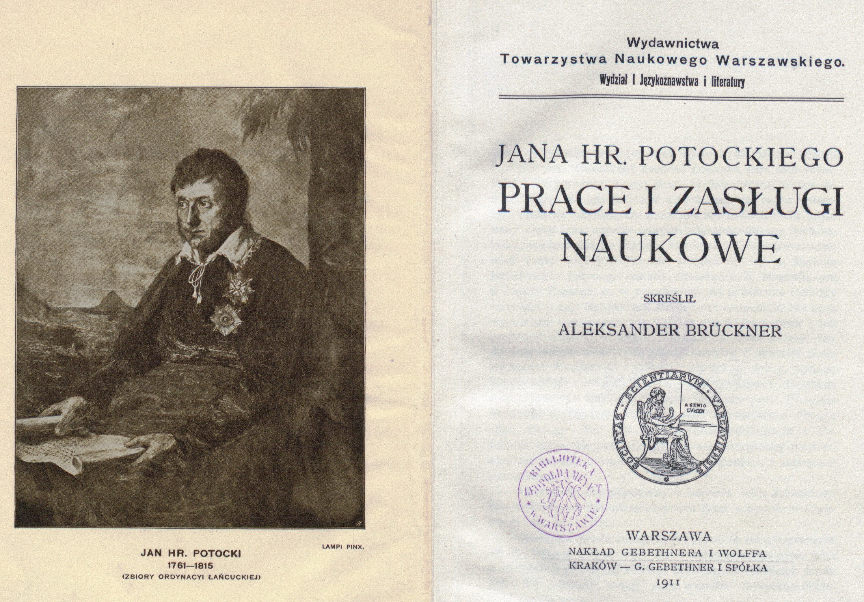 Brückner Aleksander. Jana hr. Potockiego prace i zasługi naukowe. 1911,
