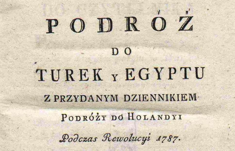 Potocki h. Pilawa Jan. Podróż do Turek y Egyptu z przydanym Dziennikiem podróży do Holandyi podczas rewolucji 1787 z francuzkiego przełożona. 1789,