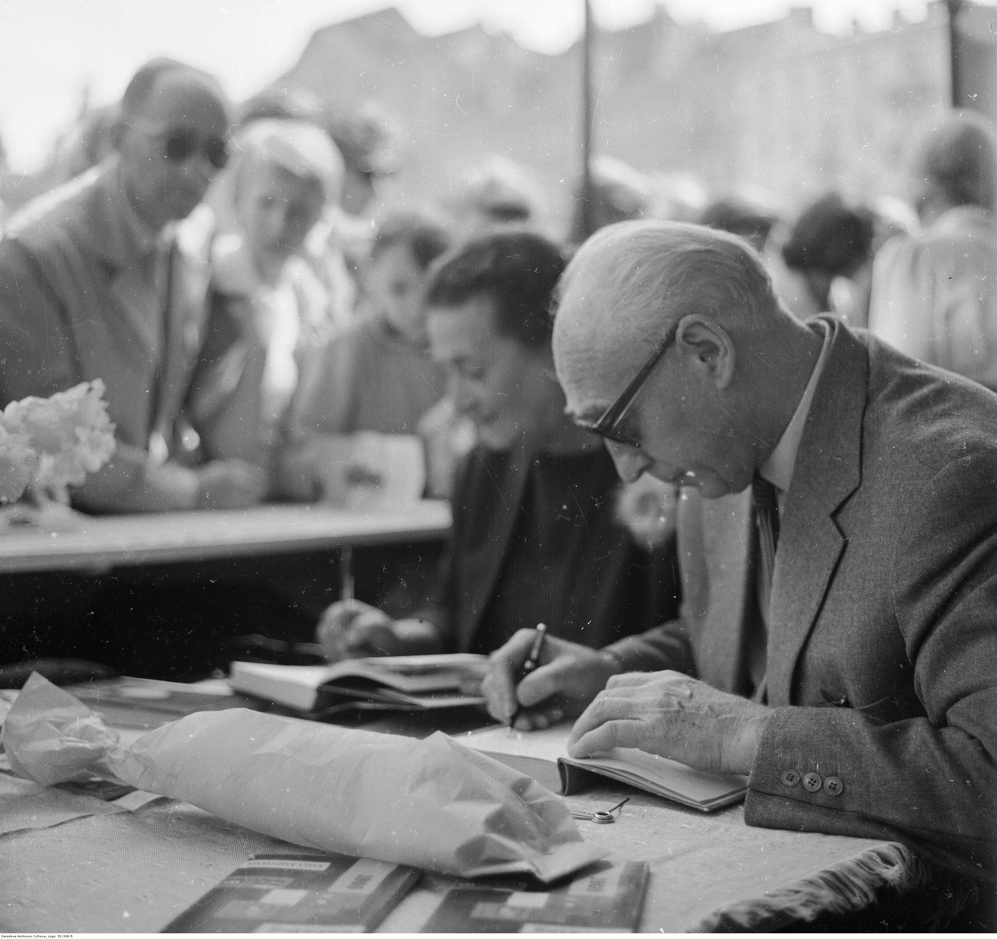 , Alina i Czesław Centkiewiczowie podpisują książki na kiermaszu podczas Dni Oświaty, Książki i Prasy w Warszawie w maju 1963 r., [w:] Polski słownik biograficzny, t. ,