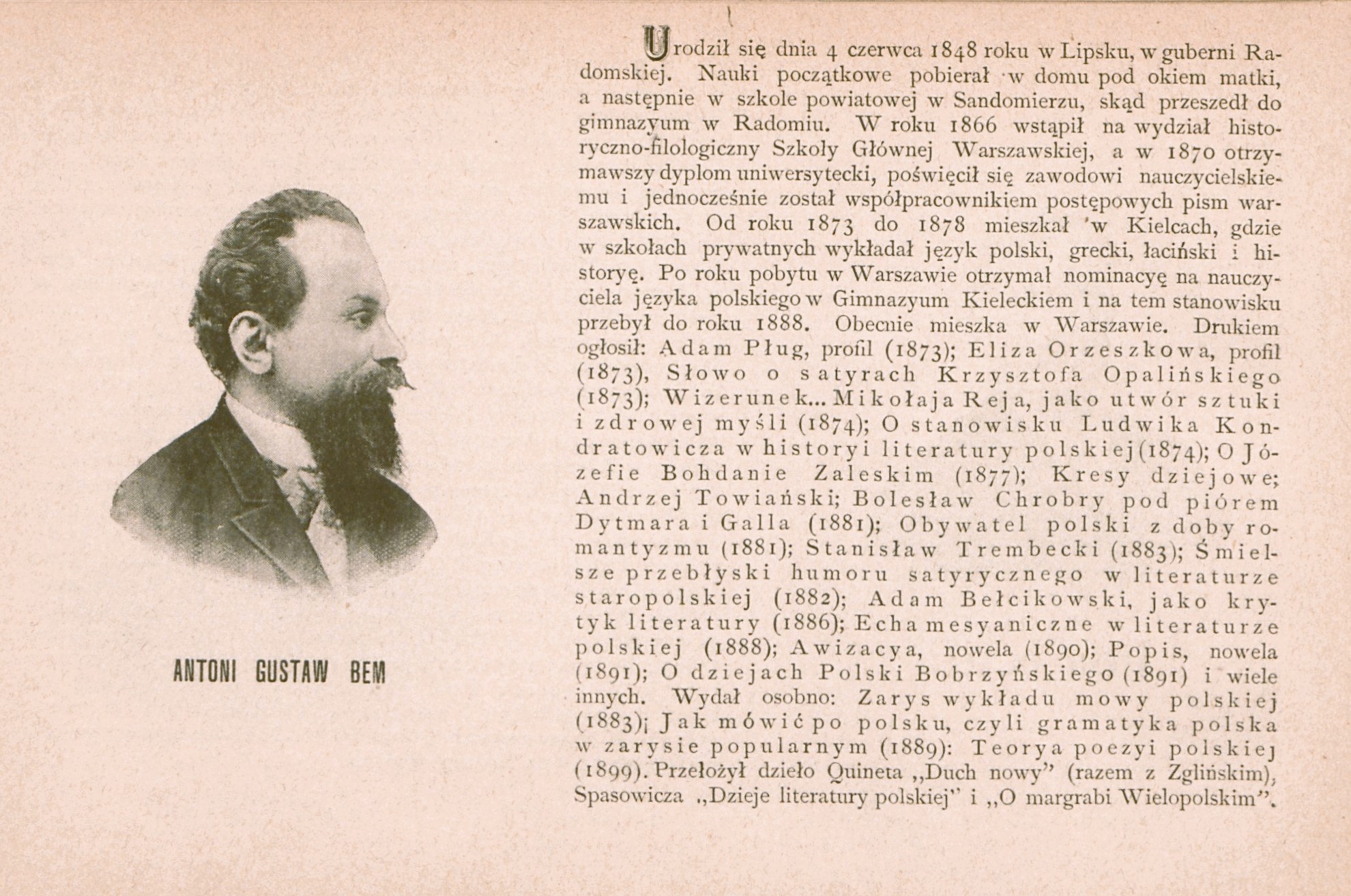 , Antoni Gustaw Bem., [w:] Polski słownik biograficzny, t. ,