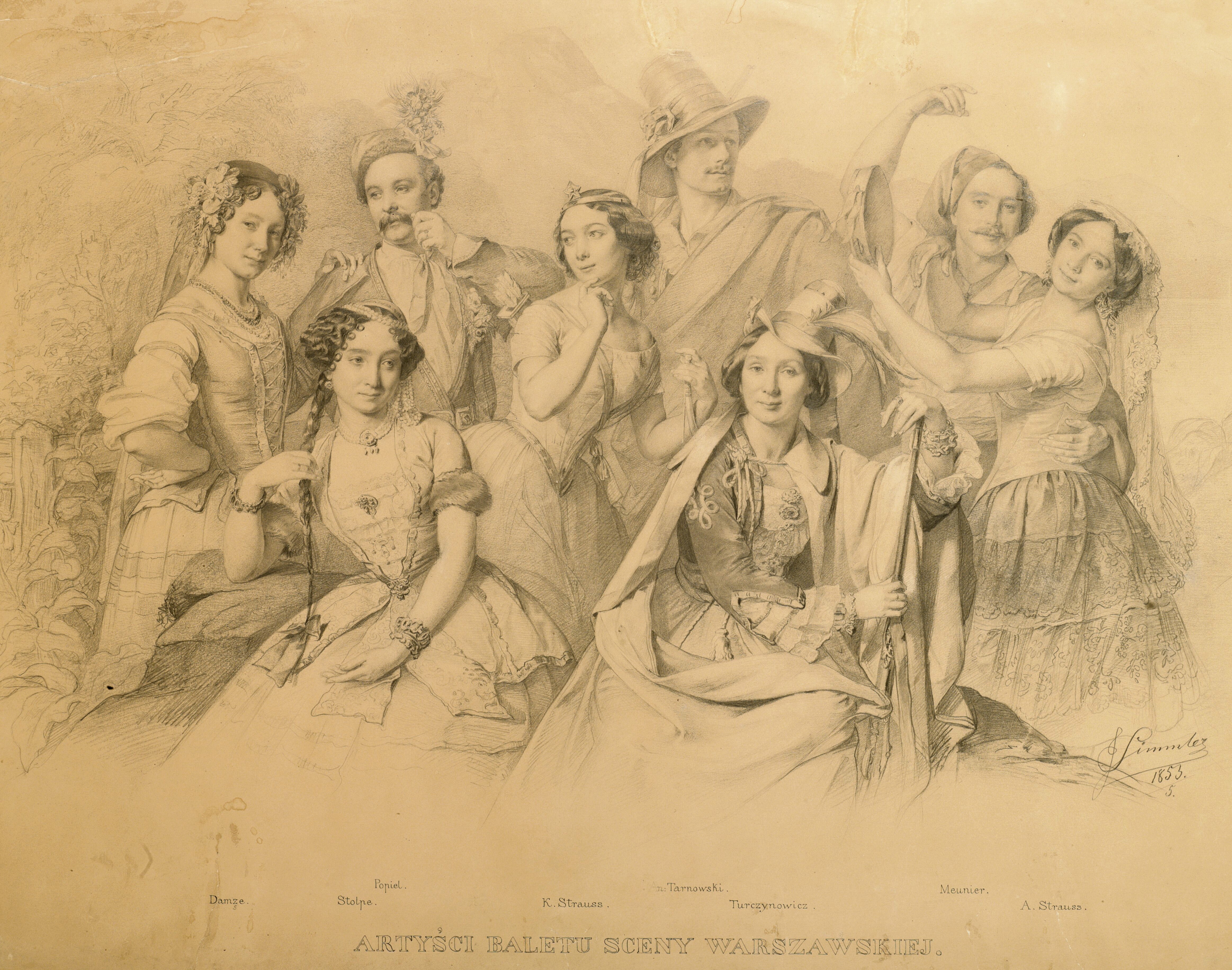 "Artyści baletu sceny warszawskiej 1853" Józefa Simmlera. share Podziel się facebook google + twitter linkedin clipboard envelope print quote picture add × Cytowane źródła Cytowanie źródła on-line, czyli Internetowego Polskiego Słownika Biograficznego "Artyści baletu sceny warszawskiej 1853" Józefa Simmlera., [online] Warszawa: Narodowy Instytut Audiowizualny [dostęp 28.02.2026]. Dostępny w internecie: http://www.biogramy.pl/a/foto/artysci-baletu-sceny-warszawskiej-1853-jozefa-simmlera Cytowanie wydania drukowanego, czyli Polskiego Słownika Biograficznego , "Artyści baletu sceny warszawskiej 1853" Józefa Simmlera., [w:] Polski słownik biograficzny, t. , IPSBID: ipsb-fo-121360 × Wyślij link do strony E-mail odbiorcy wiadomości: To pole jest wymaganeWpisz poprawny adres e-mail Twój adres e-mail: To pole jest wymaganeWpisz poprawny adres e-mail Podgląd wiadomości, która zostanie wysłana: Witaj, [Tutaj podany Twój e-mail] poleca Ci treść z iPSB (internetowym Polskim Słowniku Biograficznym) "Artyści baletu sceny warszawskiej 1853" Józefa Simmlera. × Dodaj do kolekcji wybierz kolekcję, do której chcesz dodać ten artykuł: lub wpisz nazwę nowej kolekcji, do której chcesz dodać ten artykuł: : To pole jest wymagane Dodaj do kolekcji Wybierz kolekcję Swoje kolekcje znajdziesz w profilu. Wystarczy kliknąć ikonę zębatego koła w górnym prawym rogu. Możesz je zobaczyć tu: moje kolekcje. × Dodaj do kolekcji Element został dodany do Twojej kolekcji. Swoje kolekcje możesz zobaczyć tu: moje kolekcje. × Dodaj do kolekcji Aby dodawać materiały do kolekcji musisz się zalogować. OPIS POSTACI POWIąZANE Na rysunku widoczne są nazwiska osób pod postaciami (od lewej): Damse, Stolpe, Popiel, K. Strauss, (An.) Tarnowski, Turczynowicz, Meunier, A. Strauss. Źródło kopii cyfrowej: Muzeum Narodowe w Warszawie. Postaci powiązane Antoni Tarnowski (właśc. Tarnawski) 1821-11-03 - 1887-02-07 solista baletu Warszawskich Teatrów Rządowych Karolina Straus (Strauss, po mężu Hummel) 1833-07-01 - 1909-05-31 tancerka Anna Straus (Strauss), 1.v. Iwaszkiewicz, 2.v. Burghardt 1829-07-20 - 1912-09-02 tancerka więcej >> Zobacz zdjęcie w najwyższej jakości Źródło
