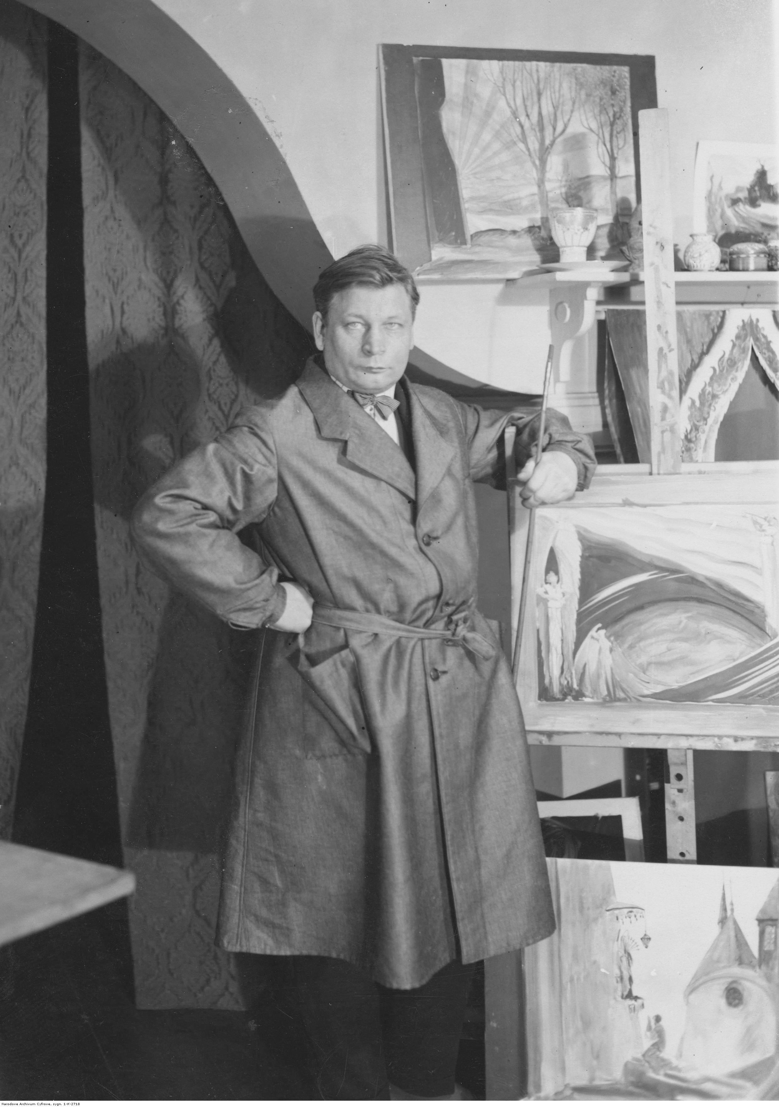 , Artysta malarz i scenograf Wincenty Drabik w pracowni teatralnej., [w:] Polski słownik biograficzny, t. ,