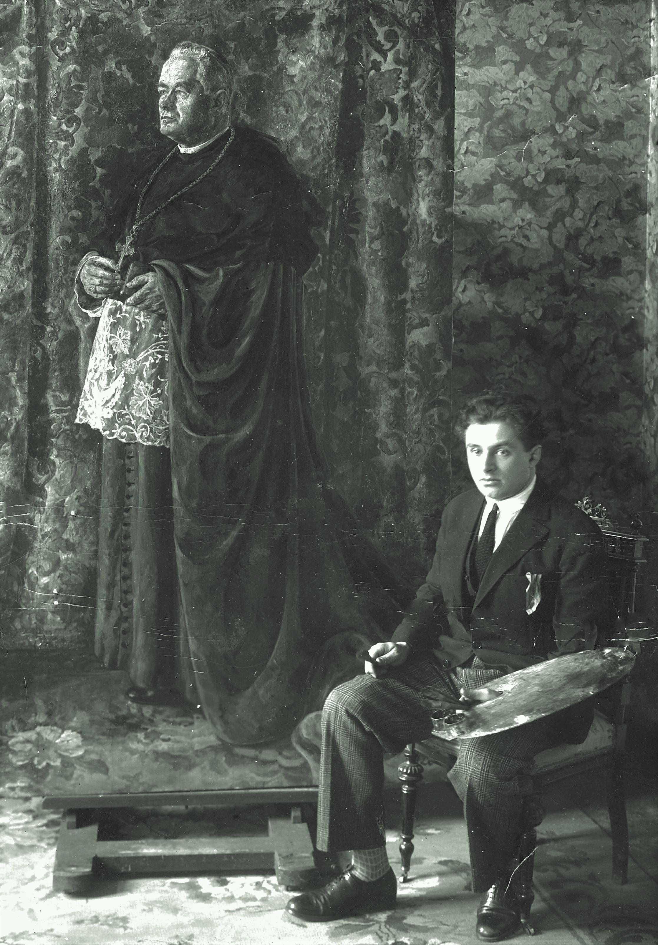 , Artysta malarz Stanisław Kotowicz-Gilewski podczas malowania portretu biskupa Mariana Leona Fulmana, 1928 r. ., [w:] Polski słownik biograficzny, t. ,