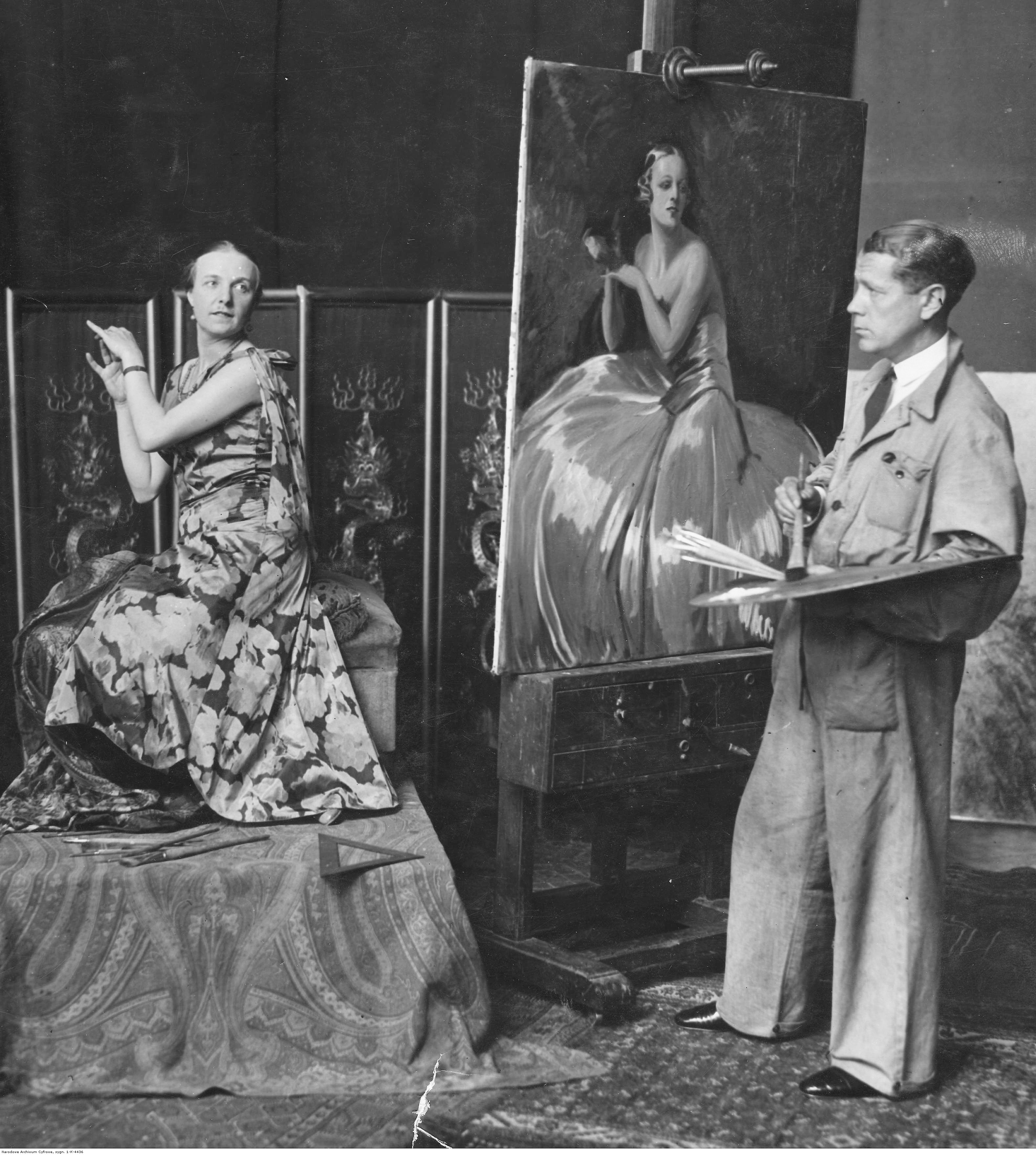 , Artysta malarz Stefan Norblin podczas malowania portretu primabaleriny Opery Warszawskiej Haliny Szmolc-Fitelberg w swojej pracowni w Warszawie w 1930 roku., [w:] Polski słownik biograficzny, t. ,