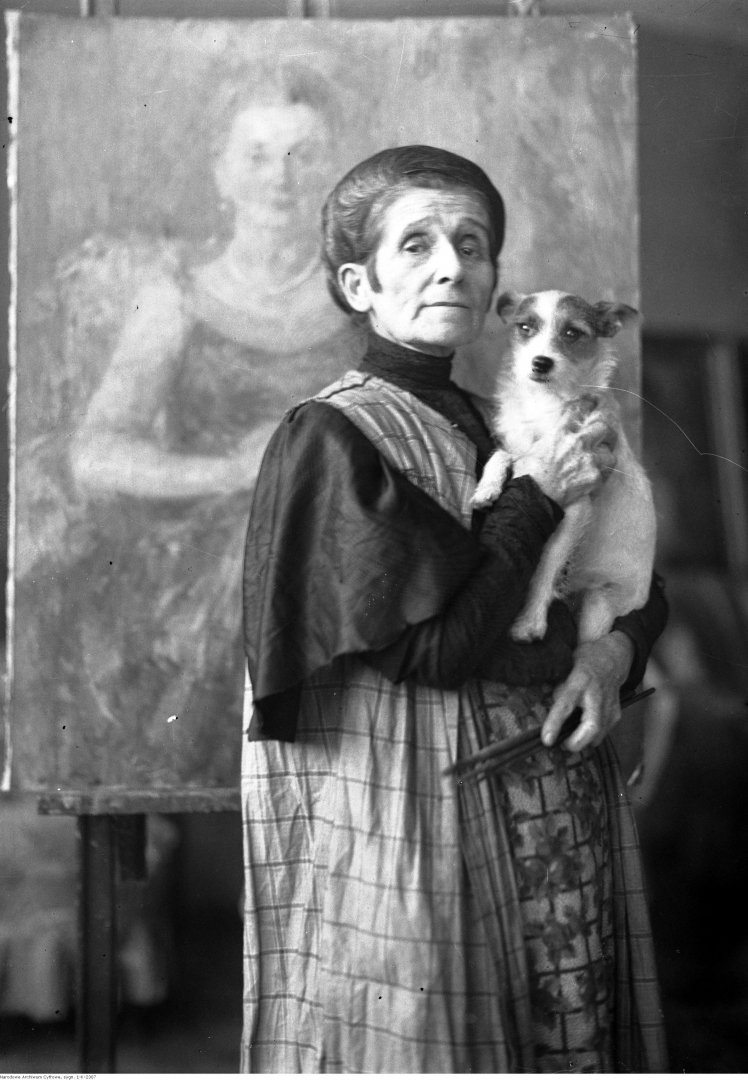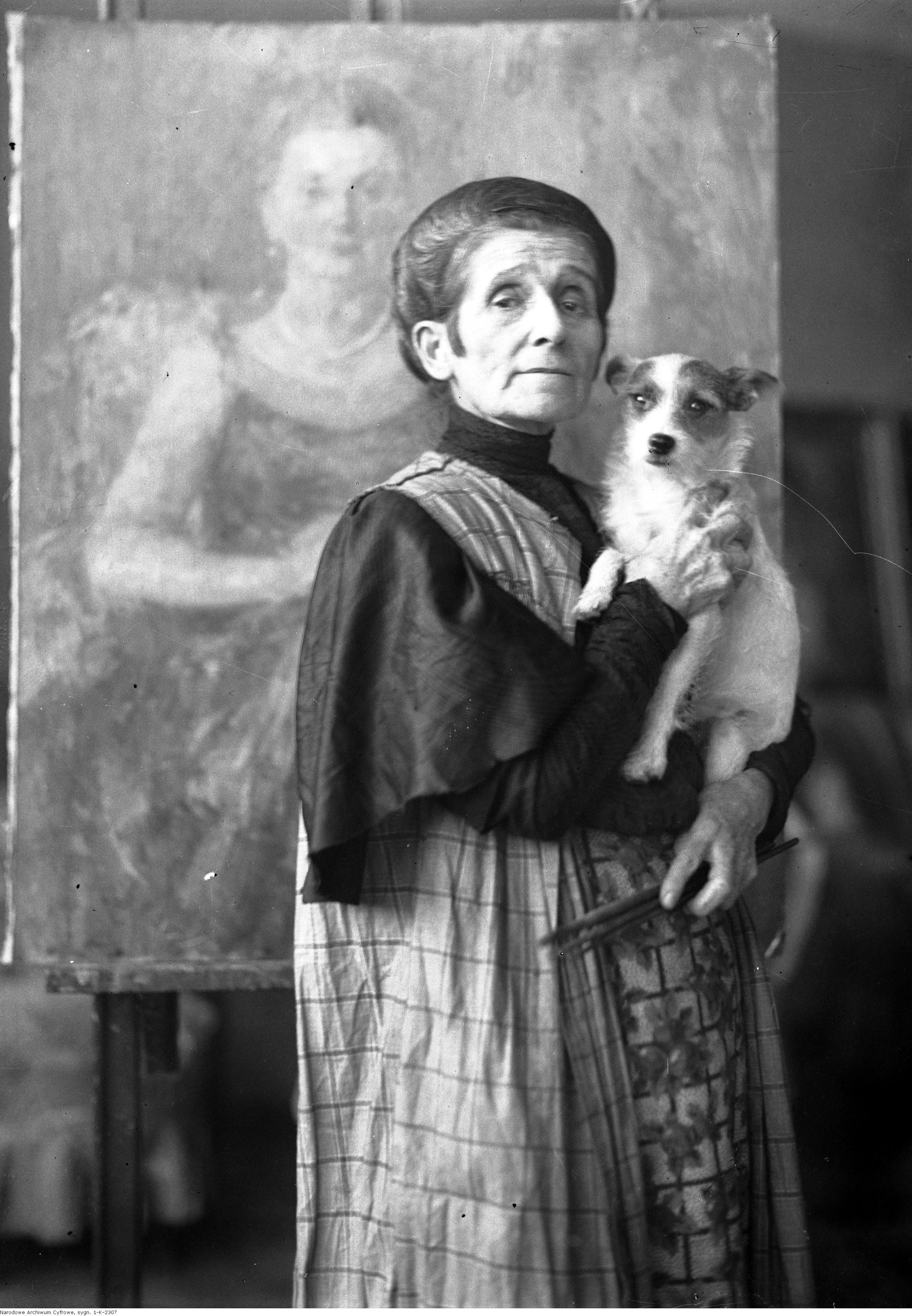 Artystka malarka Olga Boznańska z psem na tle obrazu w 1930 r., [online] Warszawa: Narodowy Instytut Audiowizualny [dostęp 13.04.2026]. Dostępny w internecie: http://www.biogramy.pl/a/foto/artystka-malarka-olga-boznanska-z-psem-na-tle-obrazu-w-1930-r