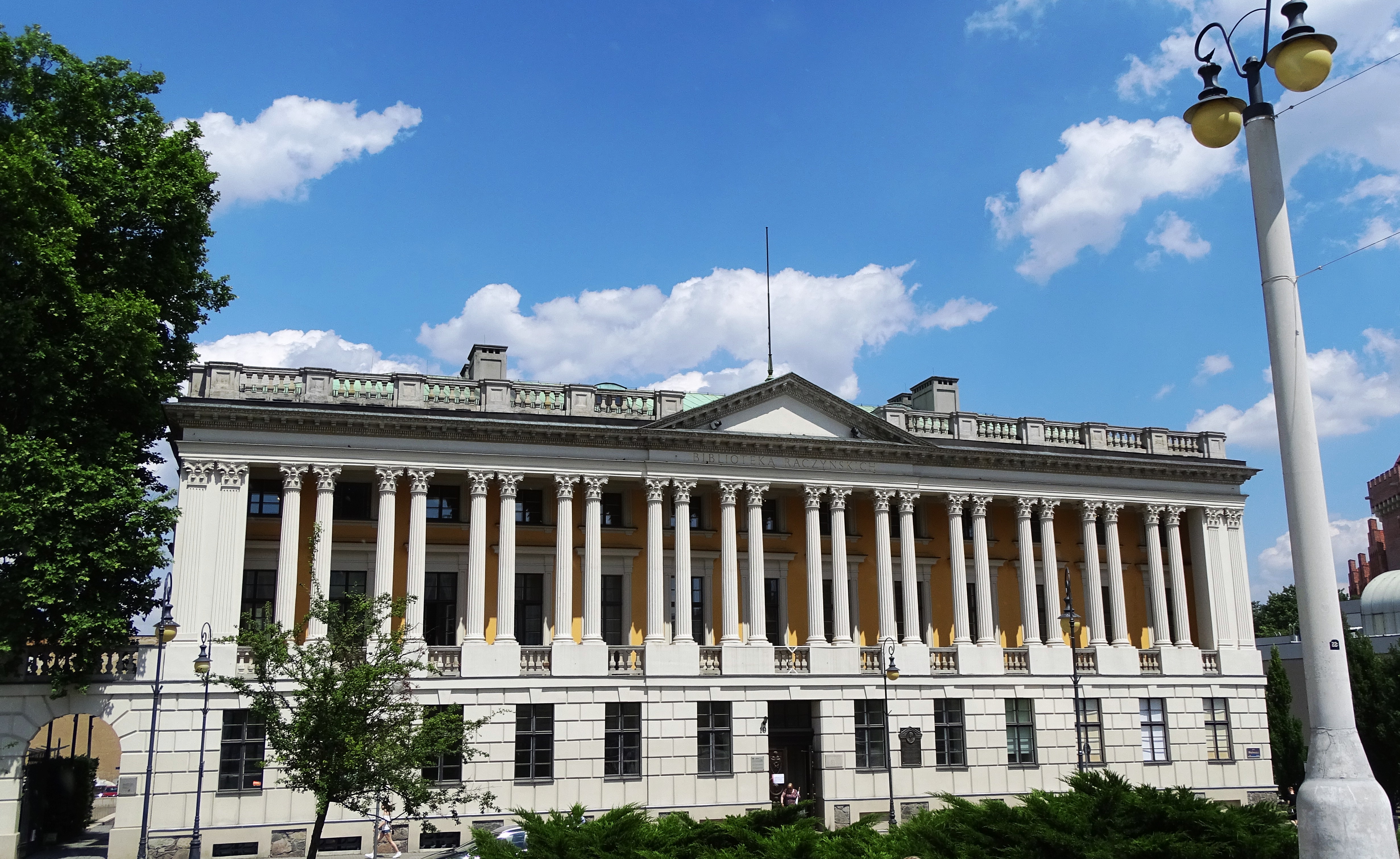 Gmach wzorowany na wschodniej fasadzie paryskiego Luwru wystawił hrabia Edward Raczyński. W 1821 roku zakupił on od rządu pruskiego parcelę przy placu Wilhelmowskim (dziś Wolności). Gmach został zbudowany w latach 1822-1828 według pomysłu i za pieniędze Raczyńskiego. Otwarta 5 maja 1829 roku instytucja była pierwszą polską biblioteką publiczną w zaborze pruskim. W chwili otwarcia liczyła 13 000 tomów. Funkcjonowała na bazie statutu opracowanego przez samego Raczyńskiego. Zaczątek bibioteki stanowił prywatny księgozbiór fundatora.