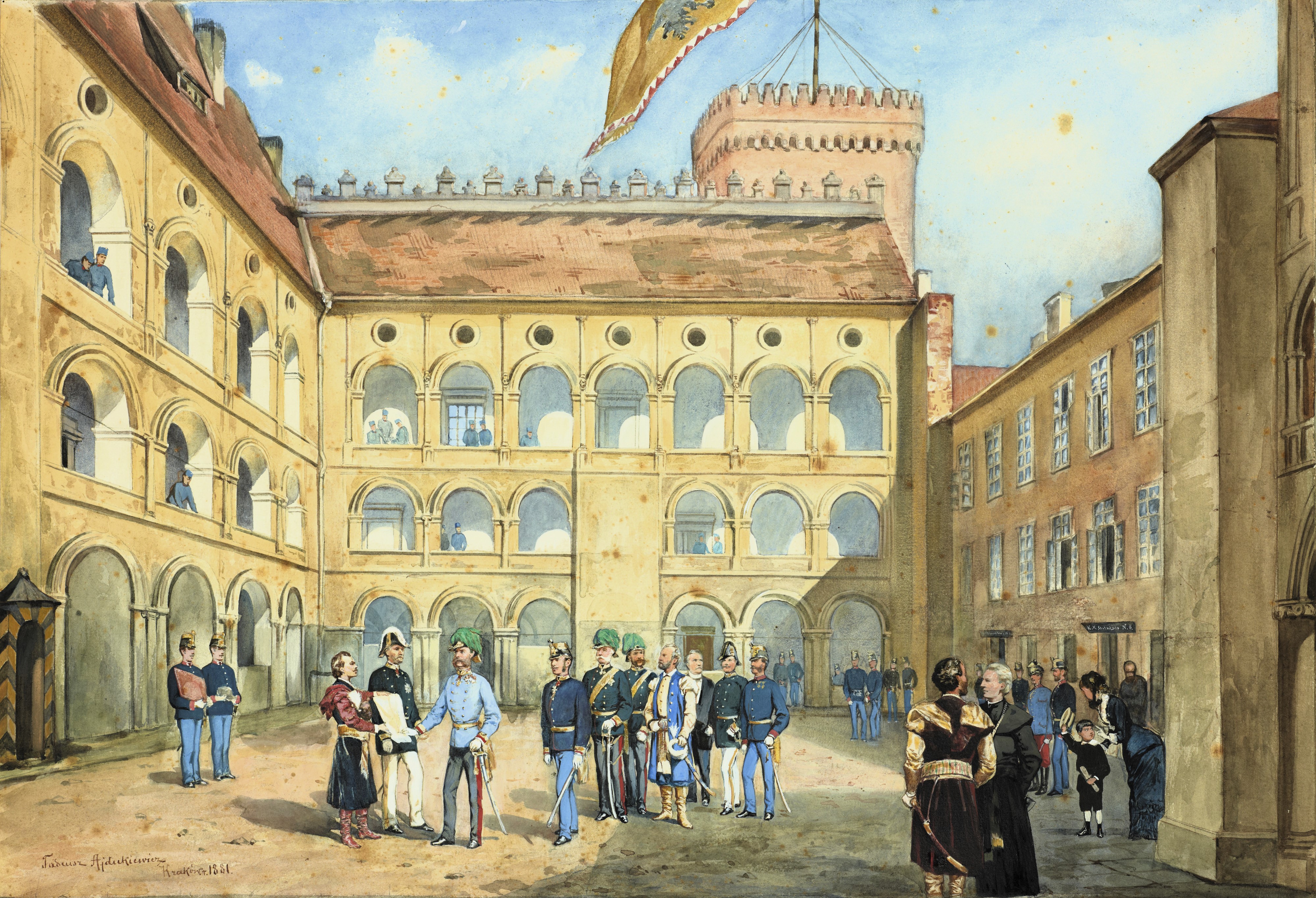 "Cesarz na dziedzińcu Zamku Królewskiego na Wawelu" Tadeusza Ajdukiewicza., [online] Warszawa: Narodowy Instytut Audiowizualny [dostęp 31.03.2026]. Dostępny w internecie: http://www.biogramy.pl/a/foto/cesarz-na-dziedzincu-zamku-krolewskiego-na-wawelu-tadeusza-ajdukiewicza