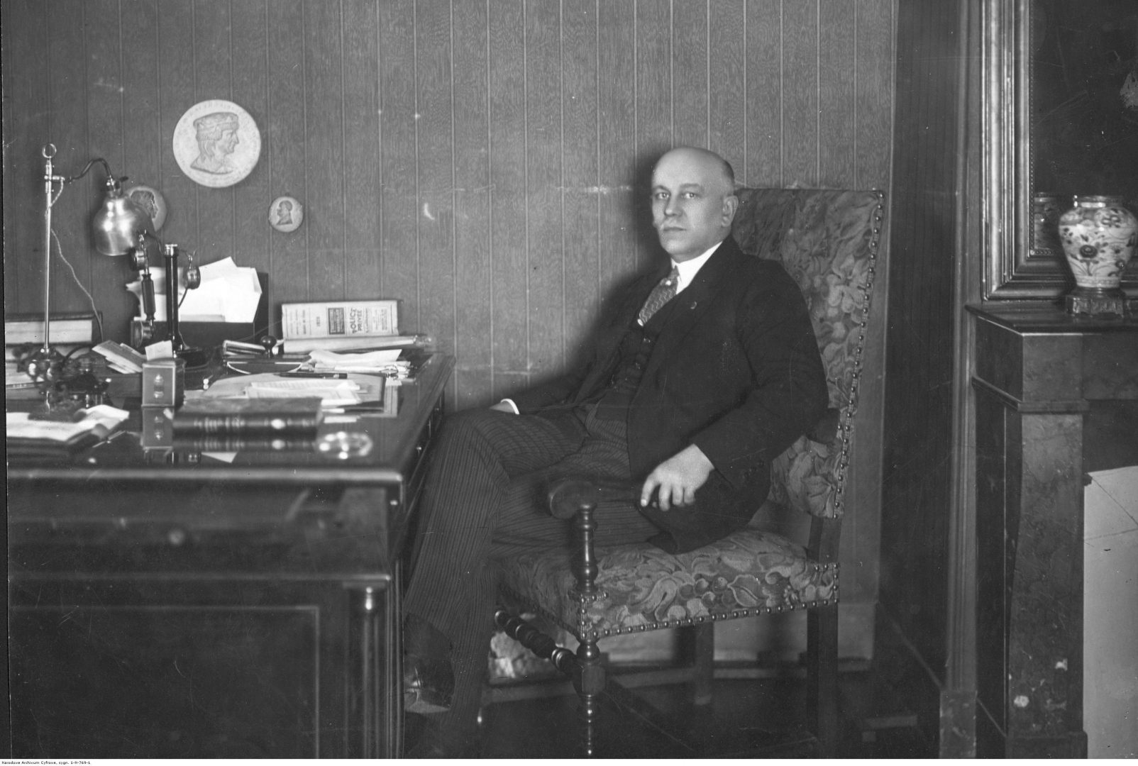 , Delegat Polskiej Akademii Umiejętności, dyrektor Biblioteki Polskiej Franciszek Pułaski w swoim gabinecie w Stacji Naukowej Polskiej Akademii Umiejętności w Paryżu w 1929 r., [w:] Polski słownik biograficzny, t. ,