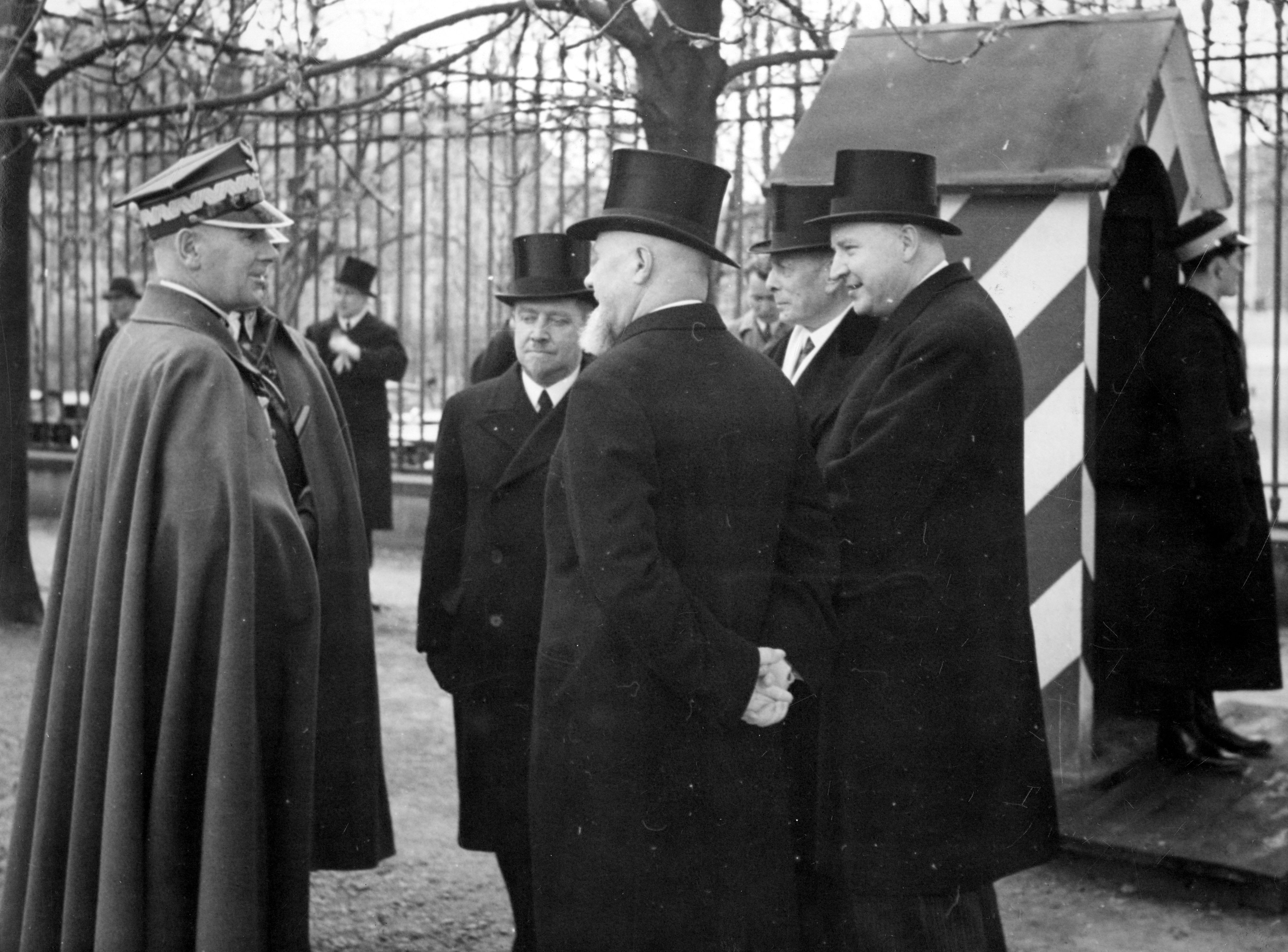Druga rocznica konstytucji kwietniowej, Warszawa 23.04.1937 r. share Podziel się facebook google + twitter linkedin clipboard envelope print quote picture add × Cytowane źródła Cytowanie źródła on-line, czyli Internetowego Polskiego Słownika Biograficznego Druga rocznica konstytucji kwietniowej, Warszawa 23.04.1937 r., [online] Warszawa: Narodowy Instytut Audiowizualny [dostęp 27.02.2026]. Dostępny w internecie: http://www.biogramy.pl/a/foto/druga-rocznica-konstytucji-kwietniowej-warszawa-23041937-r Cytowanie wydania drukowanego, czyli Polskiego Słownika Biograficznego , Druga rocznica konstytucji kwietniowej, Warszawa 23.04.1937 r., [w:] Polski słownik biograficzny, t. , IPSBID: ipsb-fo-76212 × Wyślij link do strony E-mail odbiorcy wiadomości: To pole jest wymaganeWpisz poprawny adres e-mail Twój adres e-mail: To pole jest wymaganeWpisz poprawny adres e-mail Podgląd wiadomości, która zostanie wysłana: Witaj, [Tutaj podany Twój e-mail] poleca Ci treść z iPSB (internetowym Polskim Słowniku Biograficznym) Druga rocznica konstytucji kwietniowej, Warszawa 23.04.1937 r. × Dodaj do kolekcji wybierz kolekcję, do której chcesz dodać ten artykuł: lub wpisz nazwę nowej kolekcji, do której chcesz dodać ten artykuł: : To pole jest wymagane Dodaj do kolekcji Wybierz kolekcję Swoje kolekcje znajdziesz w profilu. Wystarczy kliknąć ikonę zębatego koła w górnym prawym rogu. Możesz je zobaczyć tu: moje kolekcje. × Dodaj do kolekcji Element został dodany do Twojej kolekcji. Swoje kolekcje możesz zobaczyć tu: moje kolekcje. × Dodaj do kolekcji Aby dodawać materiały do kolekcji musisz się zalogować. OPIS POSTACI POWIąZANE Dygnitarze przed Belwederem. Widoczni m.in. marszałek Polski Edward Rydz-Śmigły, marszałek senatu Aleksander Prystor, marszałek sejmu Stanisław Car, prezes Sądu Najwyższego Leon Supiński, prezes Najwyższej Izby Kontroli Państwa Jakub Krzemieński. Postaci powiązane Edward Rydz-Śmigły 1886-03-11 - 1941-12-02 działacz niepodległościowy Stanisław Car 1882-04-26 - 1938-06-18 polityk Aleksander Błażej Prystor 1874-01-02 - po 26 VII 1941 działacz niepodległościowy Leon Władysław Supiński 1874-02-18 - 1950-03-02 minister sprawiedliwości więcej >> Zobacz zdjęcie w najwyższej jakości Źródło