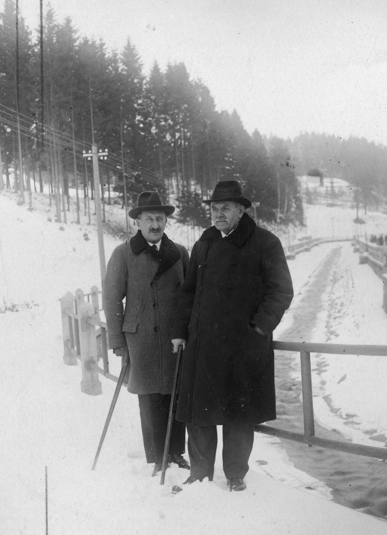 , Dyrektor Zakładu Zdrojowego w Krynicy Leon Nowotarski (z lewej) w towarzystwie redaktora naczelnego "Nowej Reformy" Michała Konopińskiego podczas spaceru w 1927 r., [w:] Polski słownik biograficzny, t. ,