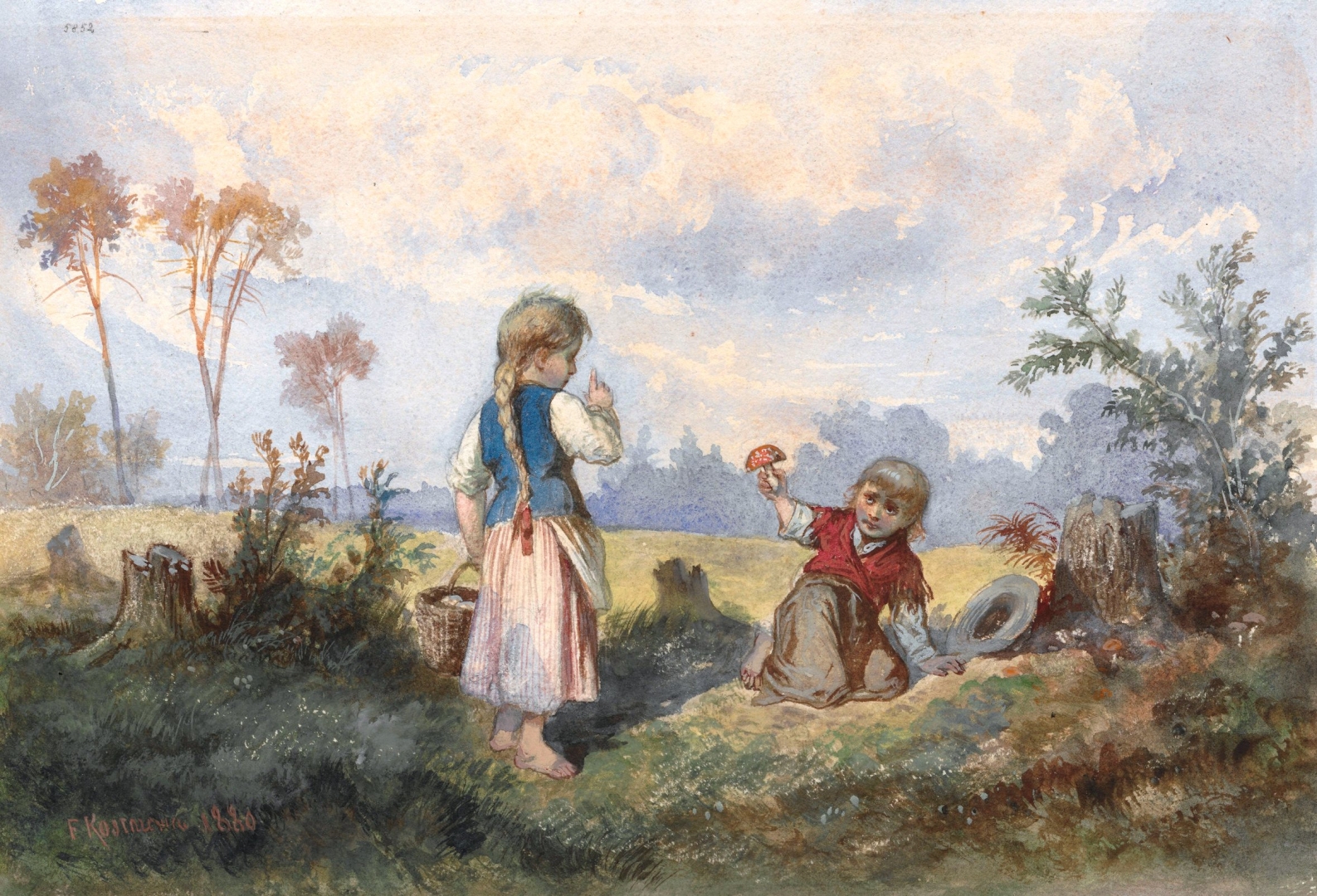 "Dzieci wiejskie zbierające grzyby" Franciszka Kostrzewskiego., [online] Warszawa: Narodowy Instytut Audiowizualny [dostęp 13.04.2026]. Dostępny w internecie: http://www.biogramy.pl/a/foto/dzieci-wiejskie-zbierajace-grzyby-franciszka-kostrzewskiego