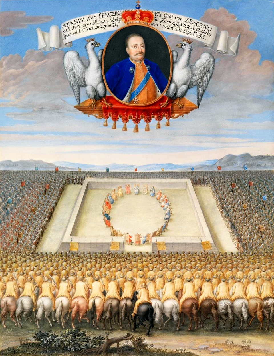 "Elekcja Stanisława Leszczyńskiego". share Podziel się facebook google + twitter linkedin clipboard envelope print quote picture add × Cytowane źródła Cytowanie źródła on-line, czyli Internetowego Polskiego Słownika Biograficznego "Elekcja Stanisława Leszczyńskiego"., [online] Warszawa: Narodowy Instytut Audiowizualny [dostęp 13.04.2026]. Dostępny w internecie: http://www.biogramy.pl/a/foto/elekcja-stanislawa-leszczynskiego Cytowanie wydania drukowanego, czyli Polskiego Słownika Biograficznego , "Elekcja Stanisława Leszczyńskiego"., [w:] Polski słownik biograficzny, t. , IPSBID: ipsb-fo-84518 × Wyślij link do strony E-mail odbiorcy wiadomości: To pole jest wymaganeWpisz poprawny adres e-mail Twój adres e-mail: To pole jest wymaganeWpisz poprawny adres e-mail Podgląd wiadomości, która zostanie wysłana: Witaj, [Tutaj podany Twój e-mail] poleca Ci treść z iPSB (internetowym Polskim Słowniku Biograficznym) "Elekcja Stanisława Leszczyńskiego". × Dodaj do kolekcji wybierz kolekcję, do której chcesz dodać ten artykuł: lub wpisz nazwę nowej kolekcji, do której chcesz dodać ten artykuł: : To pole jest wymagane Dodaj do kolekcji Wybierz kolekcję Swoje kolekcje znajdziesz w profilu. Wystarczy kliknąć ikonę zębatego koła w górnym prawym rogu. Możesz je zobaczyć tu: moje kolekcje. × Dodaj do kolekcji Element został dodany do Twojej kolekcji. Swoje kolekcje możesz zobaczyć tu: moje kolekcje. × Dodaj do kolekcji Aby dodawać materiały do kolekcji musisz się zalogować. OPIS POSTACI POWIąZANE Obraz z 1733 roku malowany gwaszem przez anonimowego malarza niemieckiego. Znajduje się w Muzeum księcia Antoniego Ulryka w Brunszwiku. Źródło kopii cyfrowej; http://kulturerbe.niedersachsen.de/viewer/objekt/isil_DE-MUS-026819_6862/1/LOG_0000/. Postaci powiązane Stanisław I (Leszczyński) 1677-10-20 - 1766-02-23 król Polski więcej >> Zobacz zdjęcie w najwyższej jakości