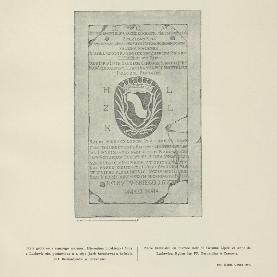 Epitafium to, chyba nieznane autorowi biogramu Jana Lipskiego w Polskim Słowniku Biograficznym, Janowi Wimmerowi (tom XVI, 1972), przynosi ważne uzupełnienia dotyczące stosunków rodzinnych Pułkownika. Otóz dowiadujemy się tu o jeszcze jednej żonie Lipskiego (nieznanej biogramowi w PSB) oraz o dwu zmarłych młodo synach (także nie wspomnianych w biogramie). Ta żona to Apolinara z Pisar czyli Apolinara Pisarska (w herbarzu Bonieckiego występująca jako Apolonia; warto przy okazji zauważyć że szwagier Lipskiego - Achacy Pisarski, także posiadający biogram w PSB, miał córkę Apolinarę z Pisarskich Dembińską oraz matkę Apolonię/Apolinarę z Latoszyńskich Pisarską, można więc roboczo założyć że Apolinara z Pisarskich Lipska to po prostu siostra Achacego Pisarskiego). Zmarłymi w młodości a niewspomnianymi w biogramie PSB są wymieni w powyższym epitafium synowie Stanisław i Kazimierz.