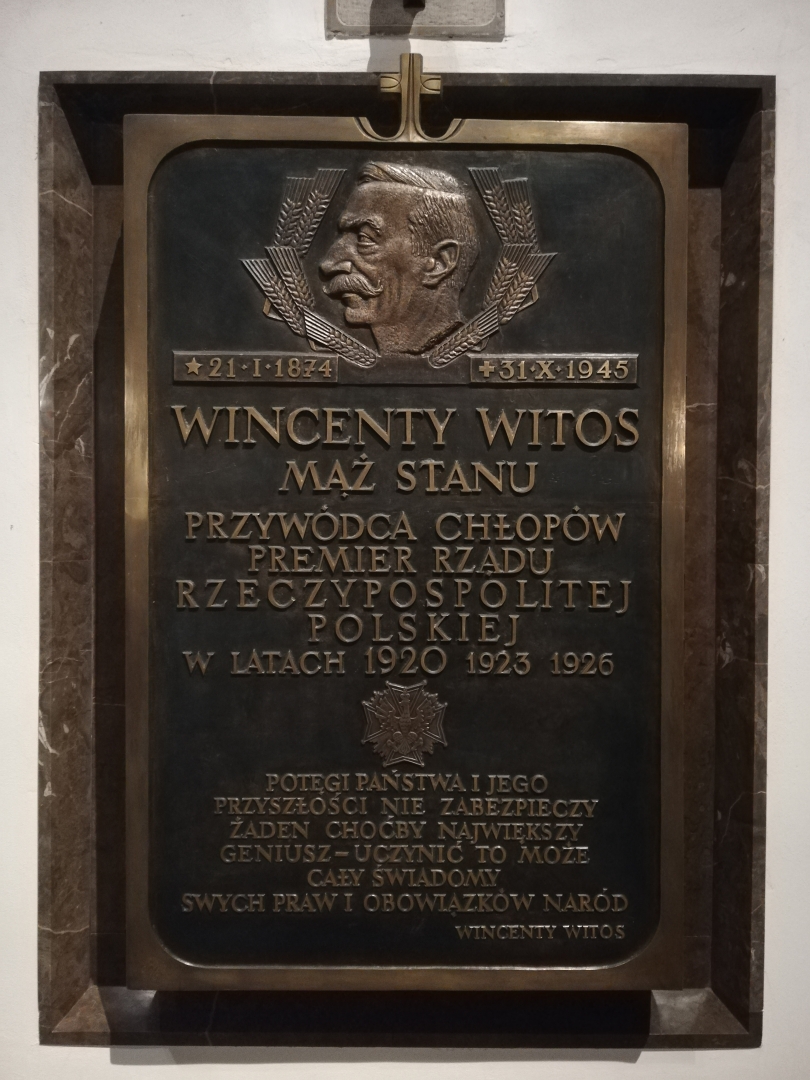 , Epitafium Wincentego Witosa, Premiera RP, w Archikatedrze Św. Jana w Warszawie., [w:] Polski słownik biograficzny, t. ,