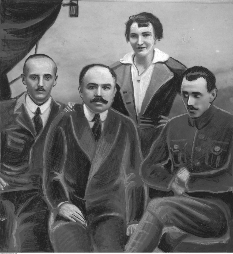 Fotografia grupowa z 1918 roku. share Podziel się facebook google + twitter linkedin clipboard envelope print quote picture add × Cytowane źródła Cytowanie źródła on-line, czyli Internetowego Polskiego Słownika Biograficznego Fotografia grupowa z 1918 roku., [online] Warszawa: Narodowy Instytut Audiowizualny [dostęp 13.04.2026]. Dostępny w internecie: http://www.biogramy.pl/a/foto/fotografia-grupowa-z-1918-roku Cytowanie wydania drukowanego, czyli Polskiego Słownika Biograficznego , Fotografia grupowa z 1918 roku., [w:] Polski słownik biograficzny, t. , IPSBID: ipsb-fo-83563 × Wyślij link do strony E-mail odbiorcy wiadomości: To pole jest wymaganeWpisz poprawny adres e-mail Twój adres e-mail: To pole jest wymaganeWpisz poprawny adres e-mail Podgląd wiadomości, która zostanie wysłana: Witaj, [Tutaj podany Twój e-mail] poleca Ci treść z iPSB (internetowym Polskim Słowniku Biograficznym) Fotografia grupowa z 1918 roku. × Dodaj do kolekcji wybierz kolekcję, do której chcesz dodać ten artykuł: lub wpisz nazwę nowej kolekcji, do której chcesz dodać ten artykuł: : To pole jest wymagane Dodaj do kolekcji Wybierz kolekcję Swoje kolekcje znajdziesz w profilu. Wystarczy kliknąć ikonę zębatego koła w górnym prawym rogu. Możesz je zobaczyć tu: moje kolekcje. × Dodaj do kolekcji Element został dodany do Twojej kolekcji. Swoje kolekcje możesz zobaczyć tu: moje kolekcje. × Dodaj do kolekcji Aby dodawać materiały do kolekcji musisz się zalogować. OPIS POSTACI POWIąZANE Fotografia grupowa. Widoczni: oficer I Brygady Legionów Polskich Leopold Lis-Kula (1. z lewej), Bogusław Miedziński (1. z prawej), Stefan Hubicki (w środku), Hanna Hubicka. Postaci powiązane Hanna (właściwie Anna Maria) Szlendak (Hubicka-Szlendakowa, z domu Paciorkowska, 1.v. Hubicka) 1889-08-18 - 1941-10-26 senator II RP Bogusław Miedziński 1891-03-22 - 1972-05-08 minister poczt i telegrafów Stefan Bolesław Hubicki 1877-03-18 - 1955-10-30 ginekolog Leopold Kula (Lis-Kula) 1896-11-11 - 1919-03-07 pułkownik Wojska Polskiego więcej >> Zobacz zdjęcie w najwyższej jakości Źródło