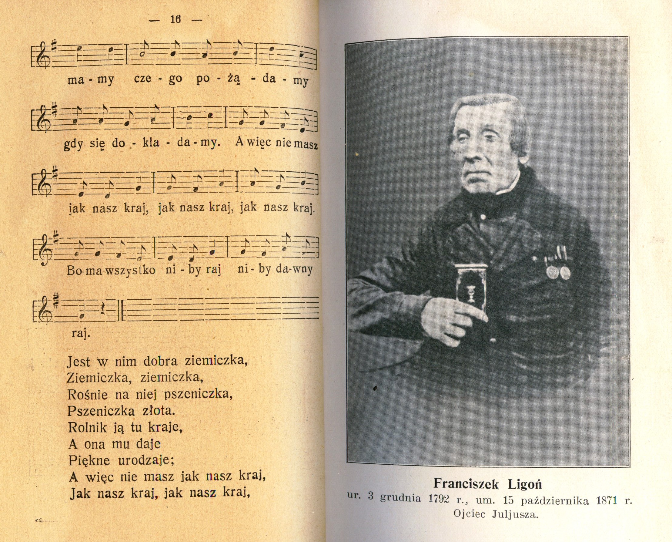 Portret Franciszka Ligonia w książce jego syna., [online] Warszawa: Narodowy Instytut Audiowizualny [dostęp 27.02.2026]. Dostępny w internecie: http://www.biogramy.pl/a/foto/franciszek-ligon-ojciec-juliusz-ligonia-w-publikacji-syna