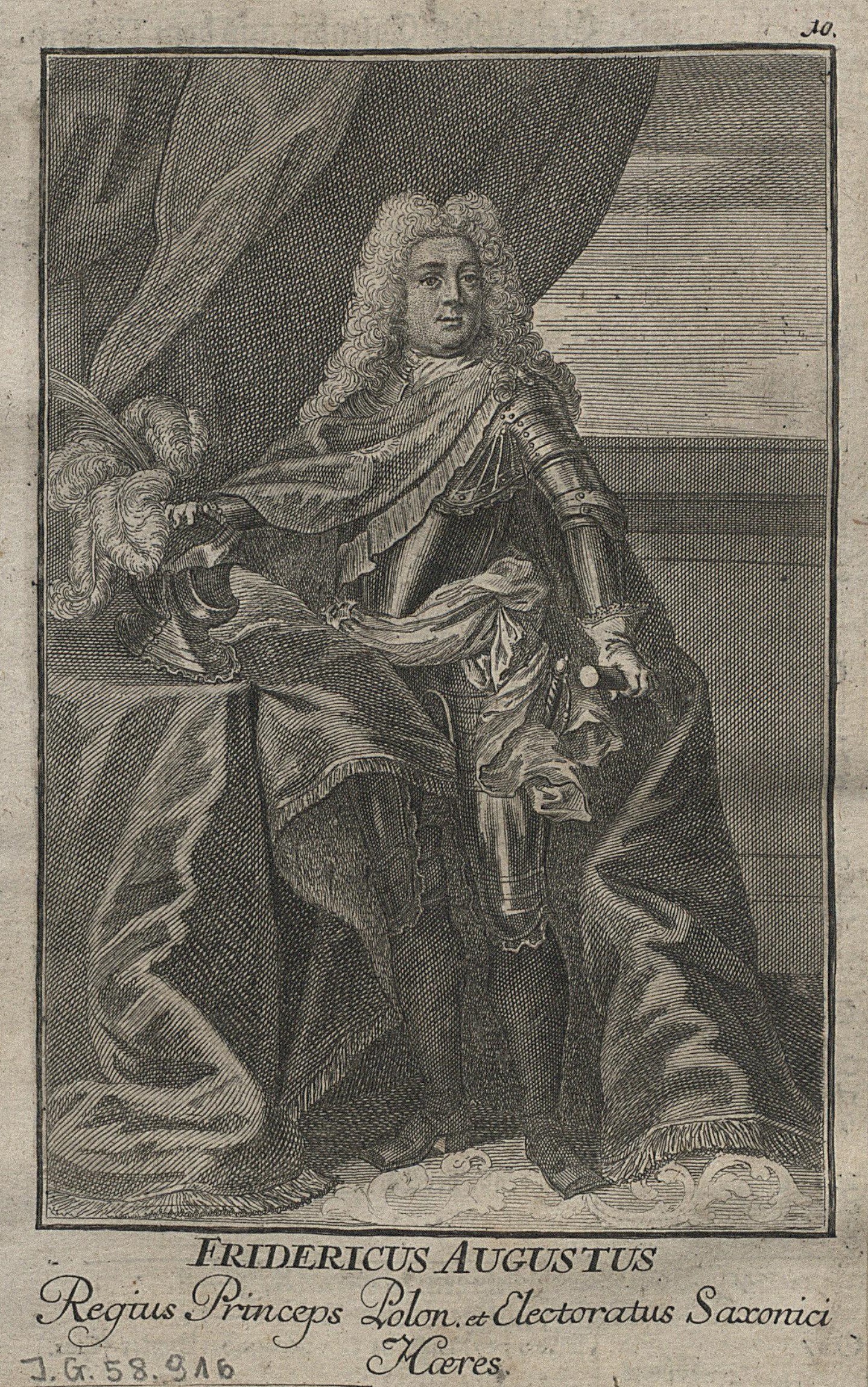 Grafika przedstawiająca "Fryderyka Augusta, królewskiego księcia polskiego i dziedzica Elektoratu Saskiego", czyli późniejszego króla Polski, Augusta III.