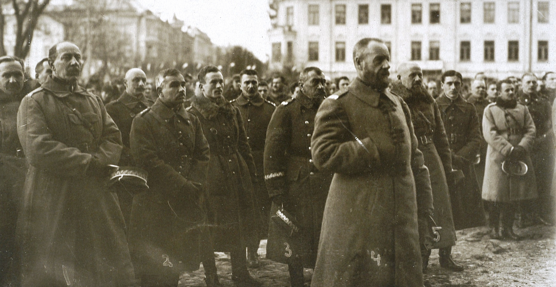 Generał Żeligowski w otoczeniu sztabu podczas mszy polowej przed katedrą w Wilnie., [online] Warszawa: Narodowy Instytut Audiowizualny [dostęp 13.04.2026]. Dostępny w internecie: http://www.biogramy.pl/a/foto/general-zeligowski-w-otoczeniu-sztabu-podczas-mszy-polowej-przed-katedra-w-wilnie-1