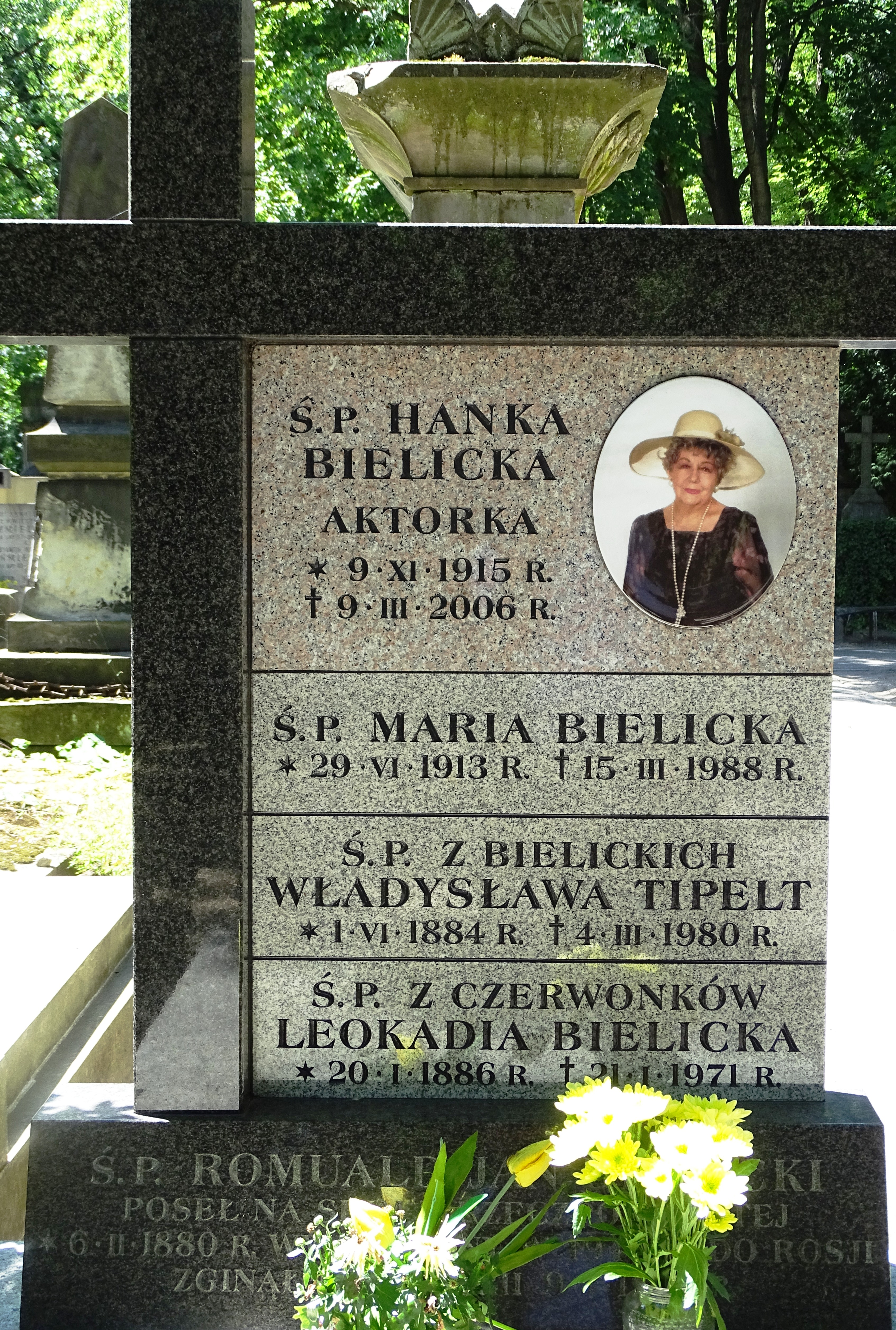 Grób Hanki Bielickiej na cmentarzu Powązkowskim w Warszawie., [online] Warszawa: Narodowy Instytut Audiowizualny [dostęp 28.02.2026]. Dostępny w internecie: http://www.biogramy.pl/a/foto/grob-hanki-bielickiej-na-cmentarzu-powazkowskim-w-warszawie