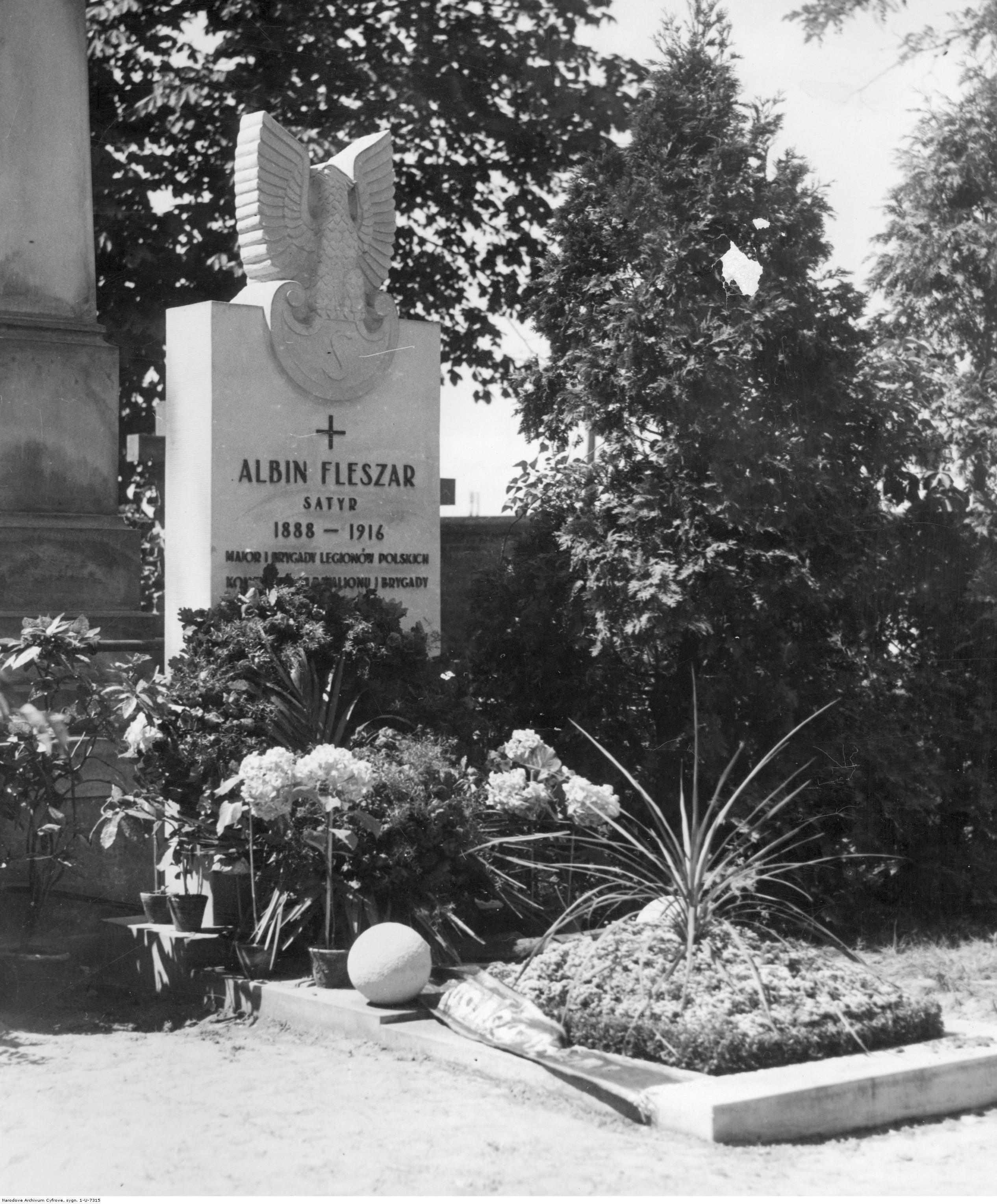 , Grób majora Albina Fleszara na wojskowym cmentarzu Powązkowskim w Warszawie., [w:] Polski słownik biograficzny, t. ,