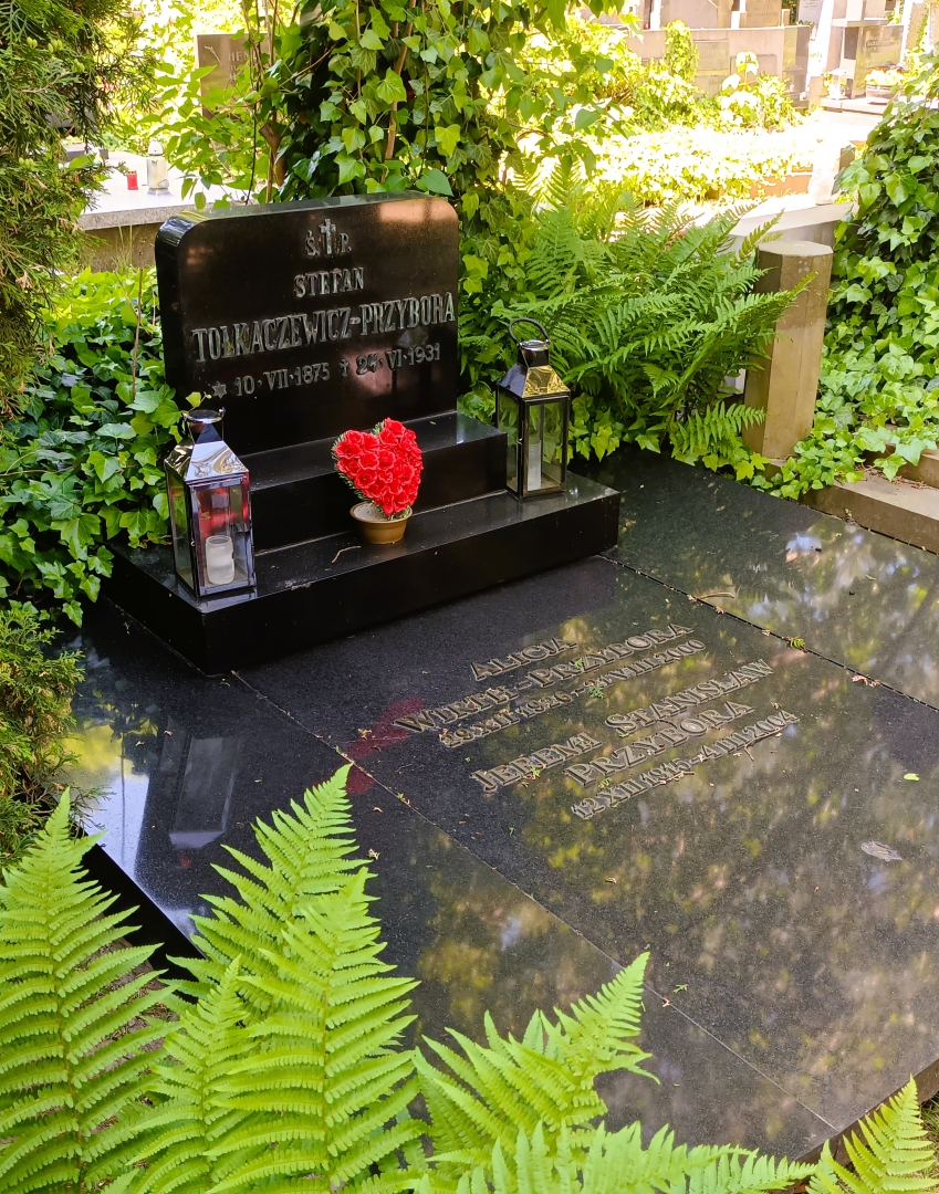 , Grób rodzinny, w którym spoczywa Jeremi Przybora, na cmentarzu ewangelicko-reformowanym w Warszawie., [w:] Polski słownik biograficzny, t. ,