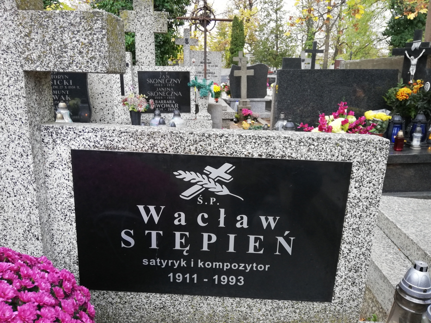 , Grób Wacława Stępnia (1911-1993), satyryka i kompozytora, na Cmentarzu Czerniakowskim w Warszawie., [w:] Polski słownik biograficzny, t. ,