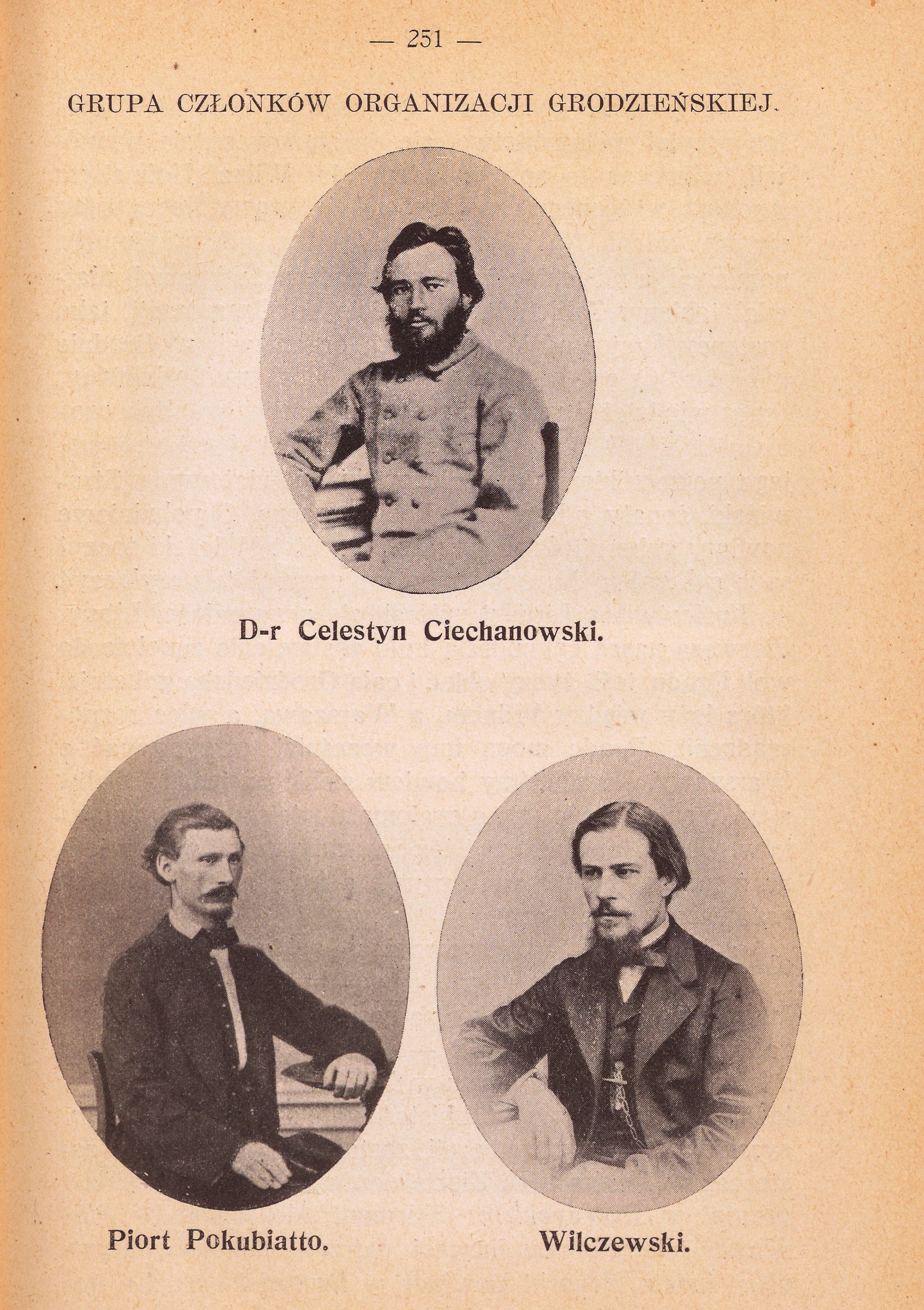 Grupa członków organizacji grodzieńskiej. D-r Celestyn Ciechowski. Piotr Pokubiatto. Wilczewski., [online] Warszawa: Narodowy Instytut Audiowizualny [dostęp 13.04.2026]. Dostępny w internecie: http://www.biogramy.pl/a/foto/grupa-czlonkow-organizacji-grodzienskiej-d-r-celestyn-ciechowski-piotr-pokubiatto-wilczewski