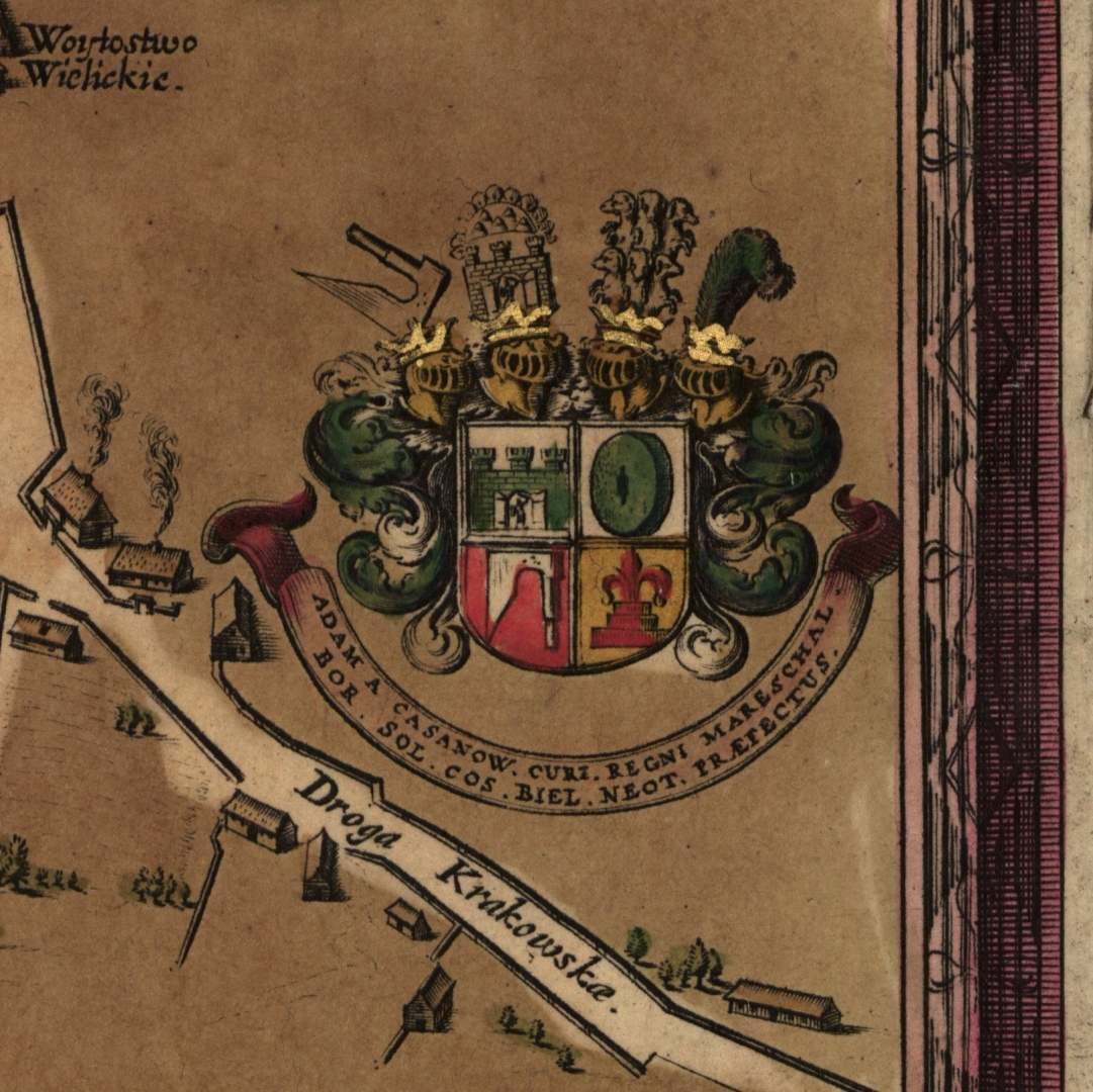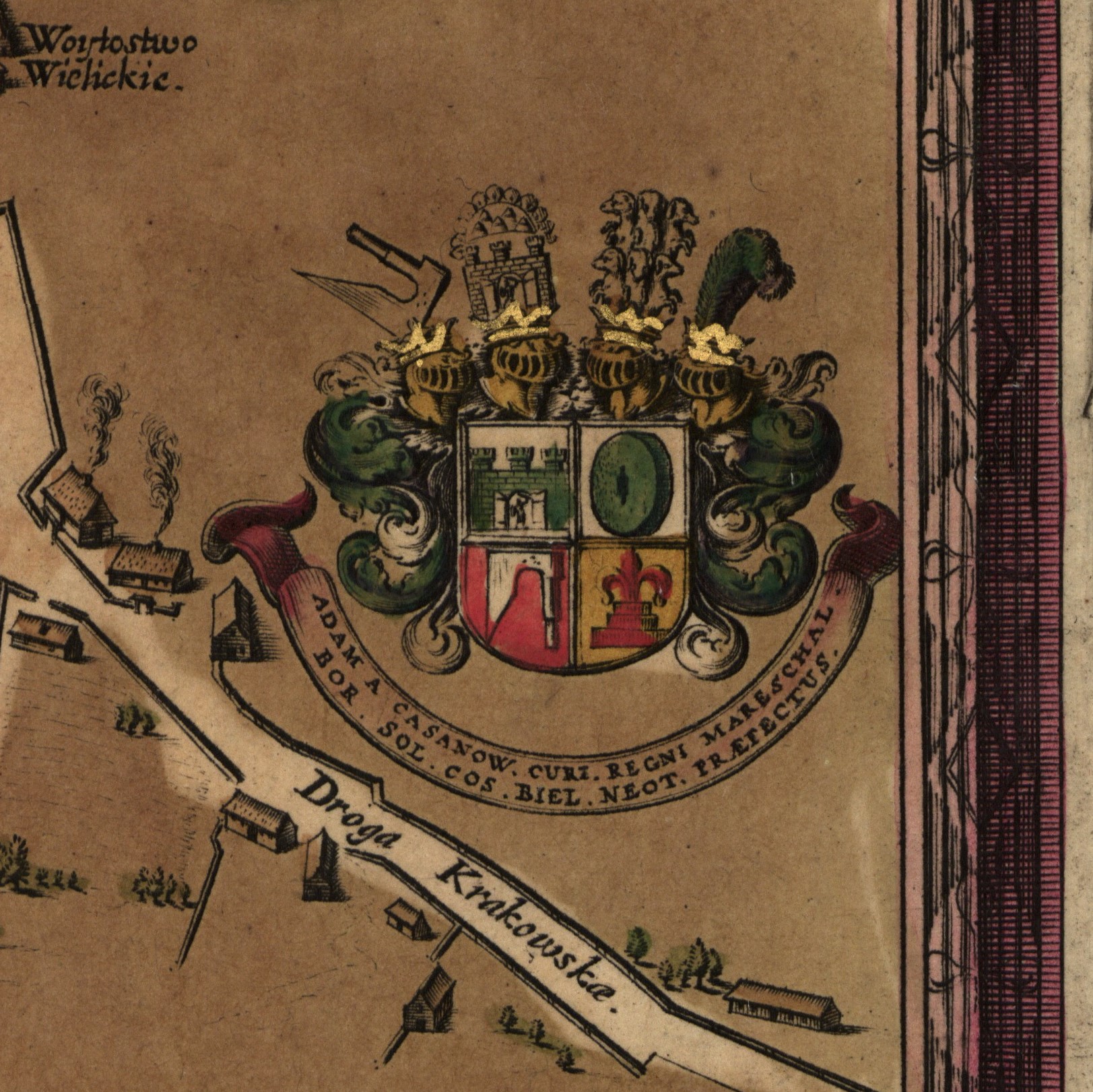 Detal z mapy Wieliczki autorstwa Wilhelma Hondiusa (wykonanie) i Marcina Germana (pomiary) z roku 1645 w zbiorach Biblioteki Narodowej w Warszawie.