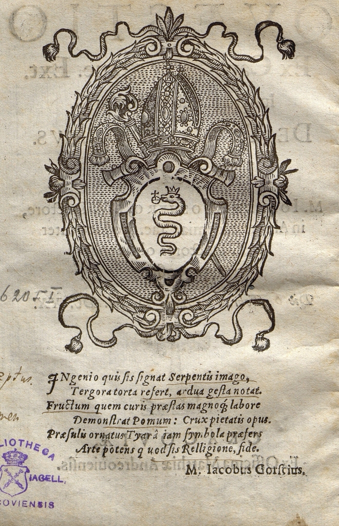 Pod herbem łaciński wiersz na herb autorstwa Jakuba Górskiego.