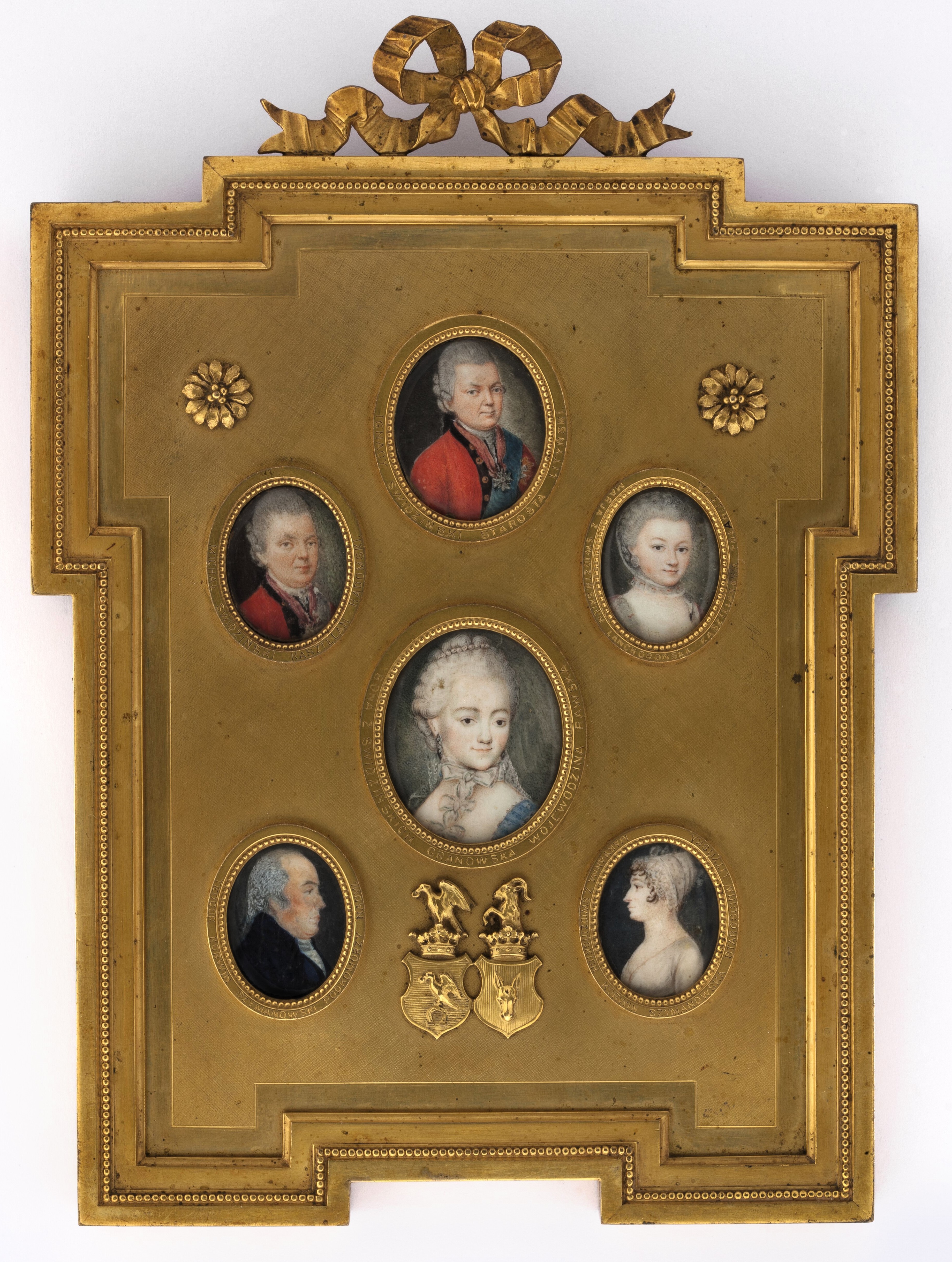 Pozłacane paneau z sześcioma portretami, pochodzącymi z przełomu XVIII i XIX wieku. Każda podobizna jest opatrzona inskrypcją z imieniem i nazwiskiem w otoku. Poniżej portretu Ignacego Świdzińskiego, znajdują się podobizny jego brata Michała i sióstr Marianny i Bony. U dołu paneau umieszczono podobizny Teodora Dyzmy Szymanowskiego i jego żony Marianny, która była córką Ignacego Świdzińskiego. Na paneau widoczne są też herby Korwin Szymanowskich i Półkozic Świdzińskich.