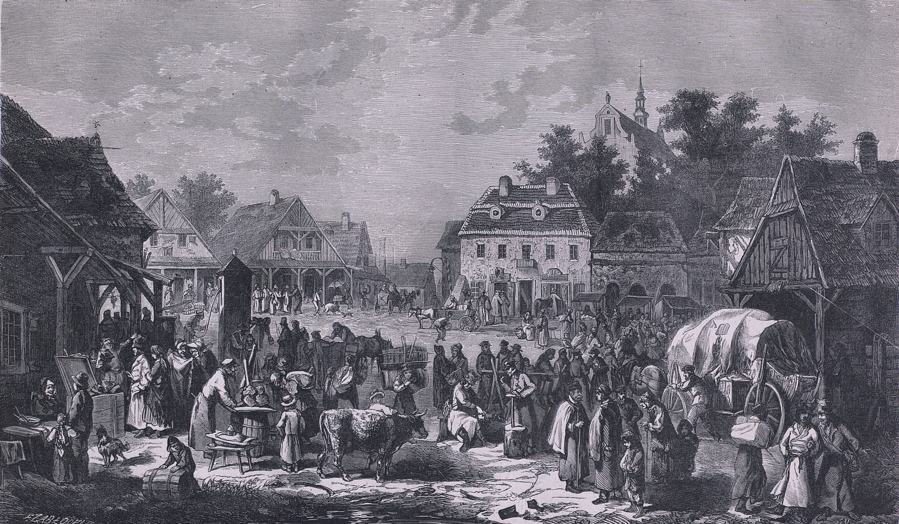 "Jarmark w małem miasteczku. Kopia obrazu" Franciszka Kostrzewskiego., [online] Warszawa: Narodowy Instytut Audiowizualny [dostęp 13.04.2026]. Dostępny w internecie: http://www.biogramy.pl/a/foto/jarmark-w-malem-miasteczku-kopia-obrazu-franciszka-kostrzewskiego