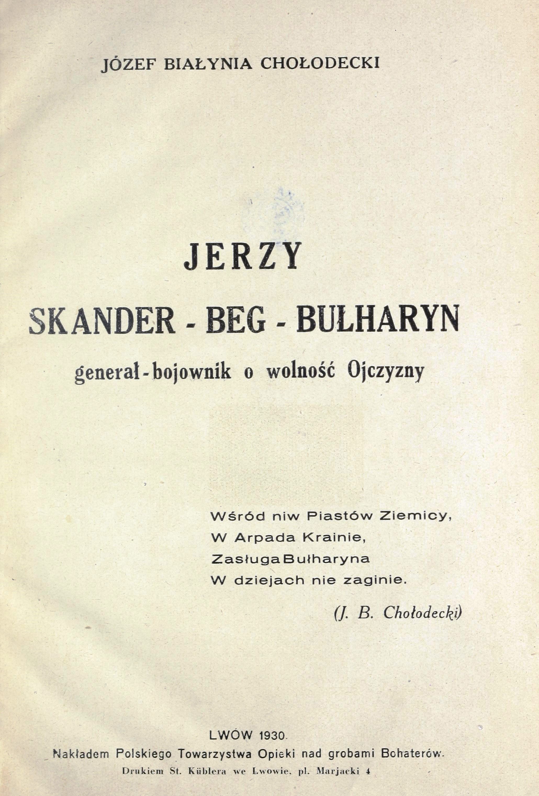 , "Jerzy Skander-Beg-Bułharyn, generał-bojownik o wolność Ojczyzny" Józefa Białynia Chołodeckiego., [w:] Polski słownik biograficzny, t. ,