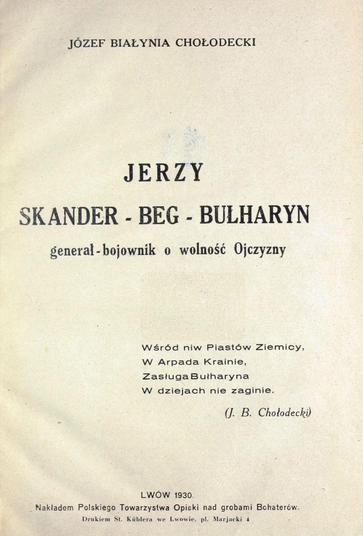 "Jerzy Skander-Beg-Bułharyn, generał-bojownik o wolność Ojczyzny" Józefa Białynia Chołodeckiego., [online] Warszawa: Narodowy Instytut Audiowizualny [dostęp 28.02.2026]. Dostępny w internecie: http://www.biogramy.pl/a/foto/jerzy-skander-beg-bulharyn-general-bojownik-o-wolnosc-ojczyzny-jozefa-bialynia-cholodeckiego