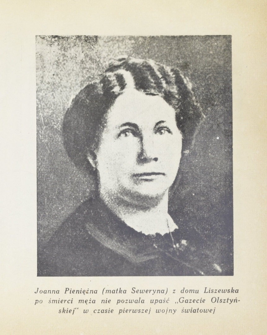 "Joanna Pieniężna (matka Seweryna) z domu Liszewska po śmierci męża nie pozwala upaść «Gazecie Olsztyńskiej» w czasie pierwszej wojny światowej", [online] Warszawa: Narodowy Instytut Audiowizualny [dostęp 05.03.2026]. Dostępny w internecie: http://www.biogramy.pl/a/foto/joanna-pieniezna-matka-seweryna-z-domu-liszewska-po-smierci-meza-nie-pozwala-upasc-gazecie-olsztynskiej-w-czasie-pierwszej-wojny-swiatowej