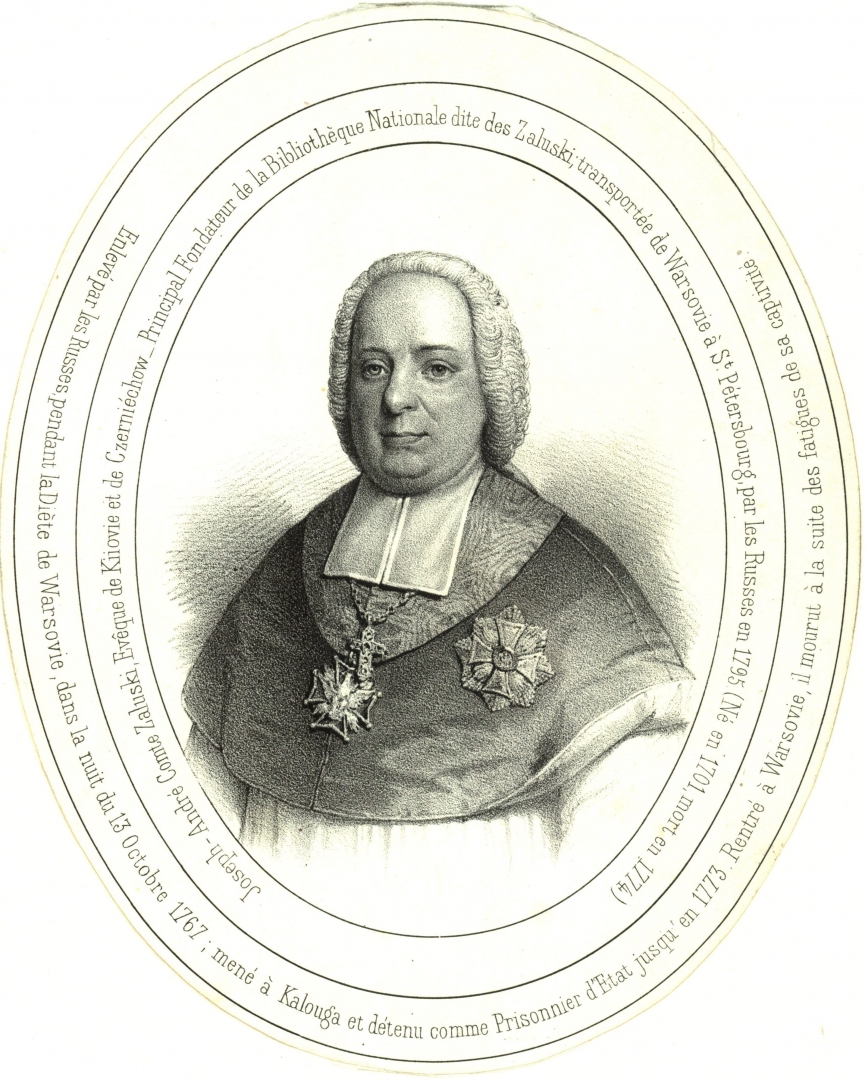 "Joseph-Andre comte Zaluski Eveque de Kiiovie et de Czerniechow [...]" Antoine`a Maurina., [online] Warszawa: Narodowy Instytut Audiowizualny [dostęp 13.04.2026]. Dostępny w internecie: http://www.biogramy.pl/a/foto/joseph-andre-comte-zaluski-eveque-de-kiiovie-et-de-czerniechow-antoinea-maurina
