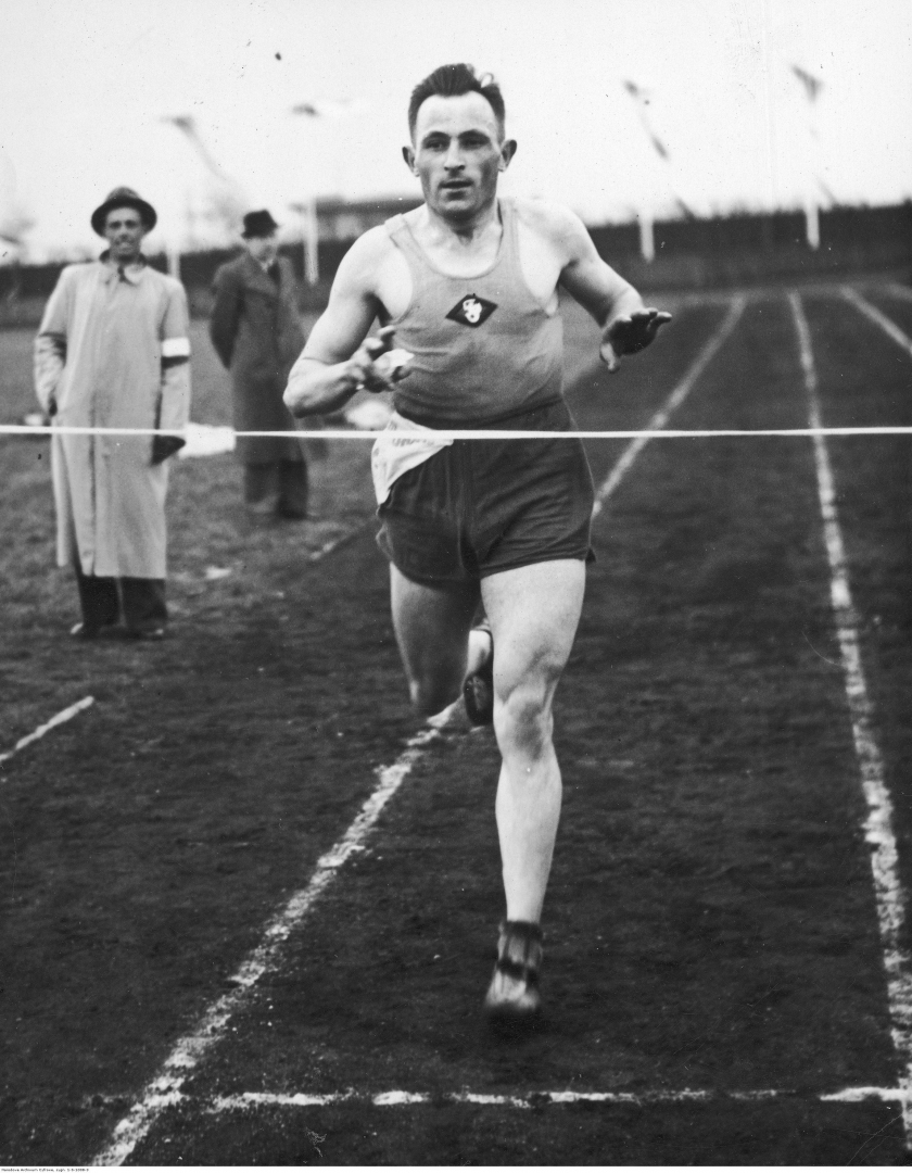 , Józef Noji przekracza linię mety biegu przełajowego w Katowicach, 8.05.1938 r., [w:] Polski słownik biograficzny, t. ,