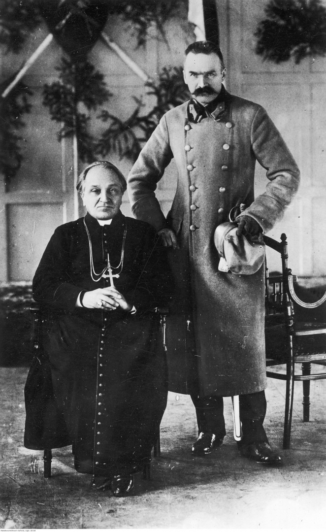 Józef Piłsudski z biskupem Władysławem Bandurskim., [online] Warszawa: Narodowy Instytut Audiowizualny [dostęp 14.04.2026]. Dostępny w internecie: http://www.biogramy.pl/a/foto/jozef-pilsudski-z-biskupem-wladyslawem-bandurskim