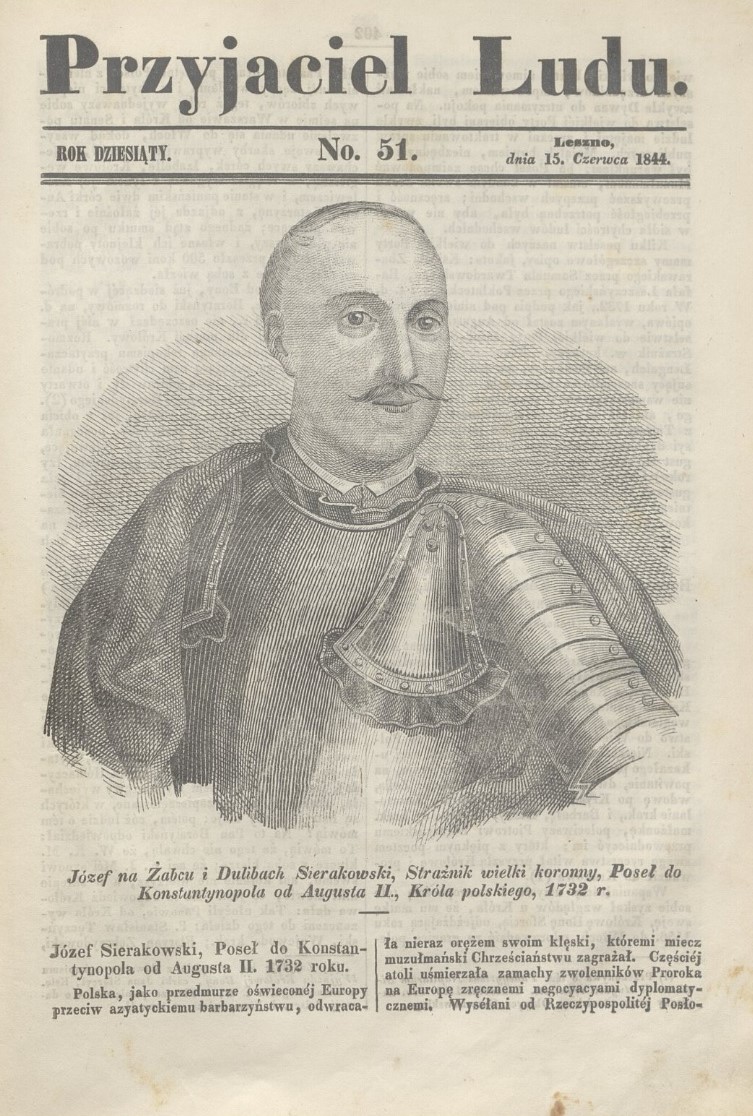 Józef Sierakowski, Strażnik Wielki Koronny. share Podziel się facebook google + twitter linkedin clipboard envelope print quote picture add × Cytowane źródła Cytowanie źródła on-line, czyli Internetowego Polskiego Słownika Biograficznego Józef Sierakowski, Strażnik Wielki Koronny., [online] Warszawa: Narodowy Instytut Audiowizualny [dostęp 03.04.2026]. Dostępny w internecie: http://www.biogramy.pl/a/foto/jozef-sierakowski-straznik-wielki-koronny Cytowanie wydania drukowanego, czyli Polskiego Słownika Biograficznego , Józef Sierakowski, Strażnik Wielki Koronny., [w:] Polski słownik biograficzny, t. , IPSBID: ipsb-fo-100925 × Wyślij link do strony E-mail odbiorcy wiadomości: To pole jest wymaganeWpisz poprawny adres e-mail Twój adres e-mail: To pole jest wymaganeWpisz poprawny adres e-mail Podgląd wiadomości, która zostanie wysłana: Witaj, [Tutaj podany Twój e-mail] poleca Ci treść z iPSB (internetowym Polskim Słowniku Biograficznym) Józef Sierakowski, Strażnik Wielki Koronny. × Dodaj do kolekcji wybierz kolekcję, do której chcesz dodać ten artykuł: lub wpisz nazwę nowej kolekcji, do której chcesz dodać ten artykuł: : To pole jest wymagane Dodaj do kolekcji Wybierz kolekcję Swoje kolekcje znajdziesz w profilu. Wystarczy kliknąć ikonę zębatego koła w górnym prawym rogu. Możesz je zobaczyć tu: moje kolekcje. × Dodaj do kolekcji Element został dodany do Twojej kolekcji. Swoje kolekcje możesz zobaczyć tu: moje kolekcje. × Dodaj do kolekcji Aby dodawać materiały do kolekcji musisz się zalogować. OPIS POSTACI POWIąZANE Portret w: Przyjaciel Ludu, rok 10, nr 51, Leszno, 15 czerwca 1844, s.401. Postaci powiązane Józef Sierakowski h. Dołęga 1682-05-09 - 1748, przed 21 VI strażnik wielki koronny więcej >> Zobacz zdjęcie w najwyższej jakości Źródło