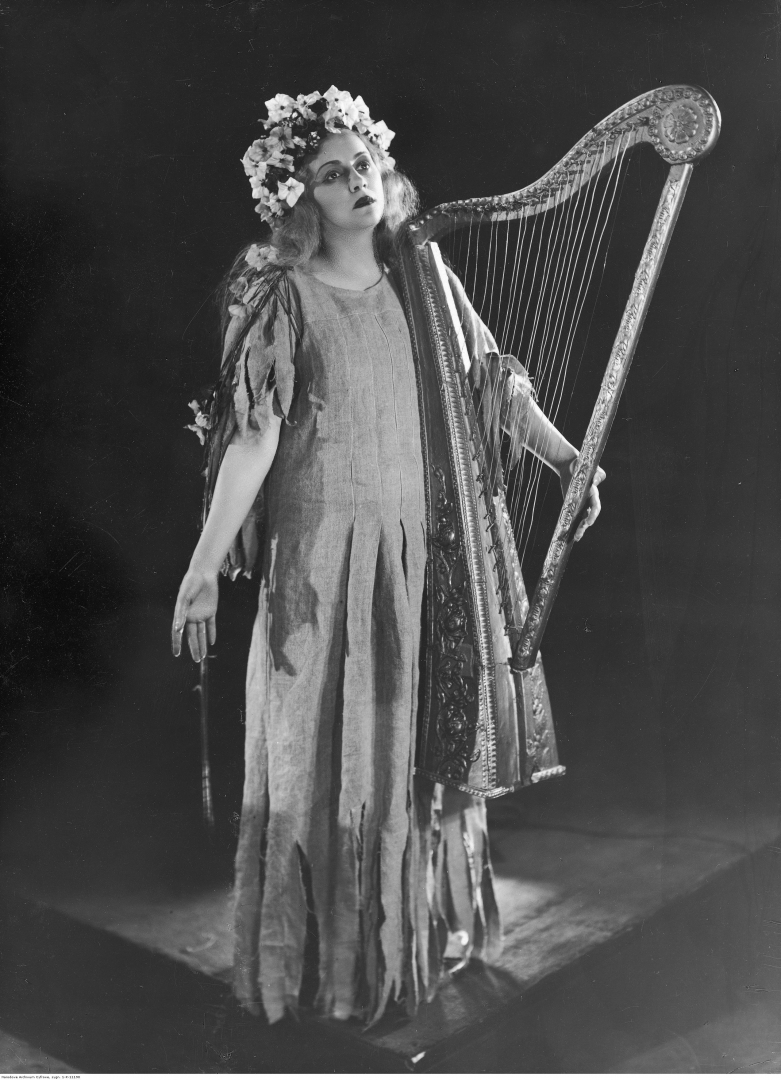 Karolina Lubieńska jako Harfiarka w przedstawieniu "Wyzwolenie" Stanisław Wyspiańskiego w Teatrze Polskim w Warszawie w 1935 r., [online] Warszawa: Narodowy Instytut Audiowizualny [dostęp 27.02.2026]. Dostępny w internecie: http://www.biogramy.pl/a/foto/karolina-lubienska-jako-harfiarka-w-przedstawieniu-wyzwolenie-stanislaw-wyspianskiego-w-teatrze-polskim-w-warszawie-w-1935-r