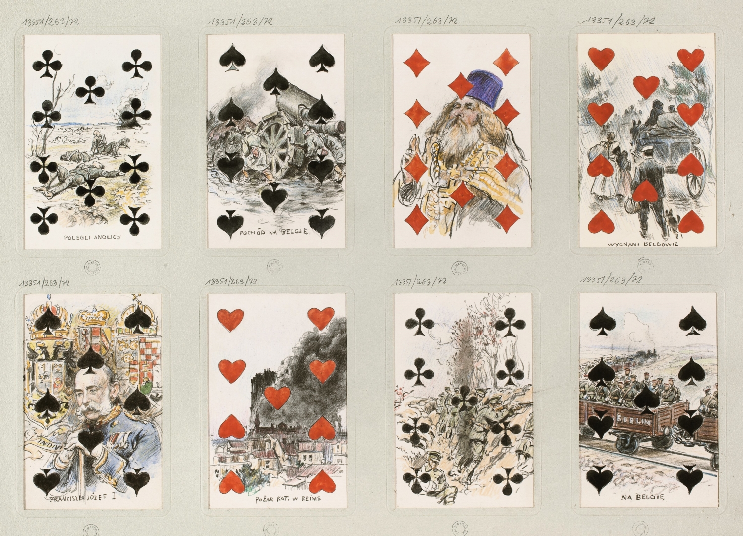 Album „Patience” składa się z 53 kart do gry, które ukazują w sposób symboliczny państwa biorące udział w wojnie: ich władców, głównodowodzących poszczególnych armii, a także działania wojenne i ich skutki. Mocarstwom zaangażowanym w konflikt odpowiadają kolory karciane: piki odnoszą się do Niemiec i Austro-Węgier, kiery oznaczają Francję i Belgię, trefle symbolizują Wielką Brytanię, a karo – Rosję.