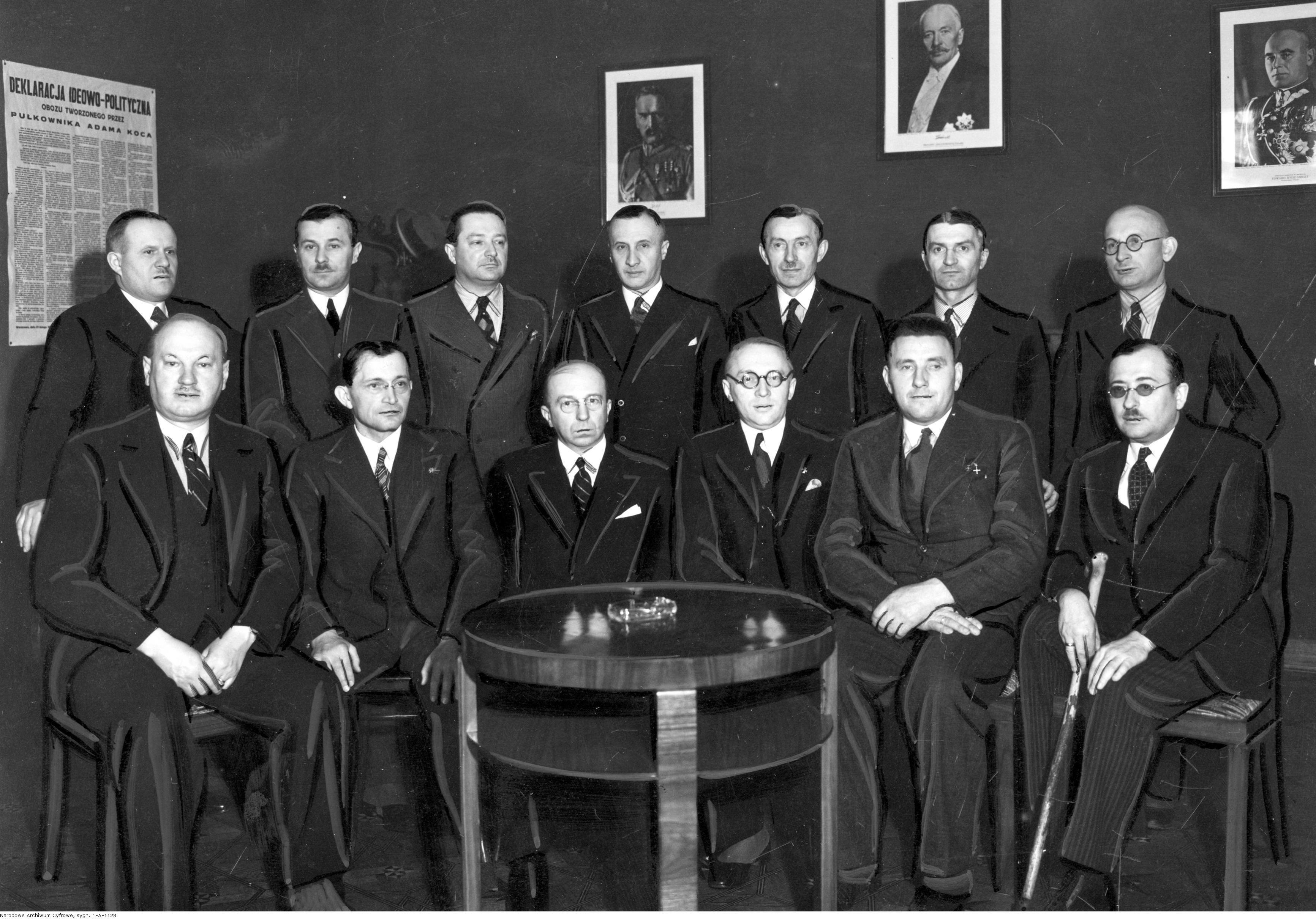 Koło parlamentarne Obozu Zjednoczenia Narodowego w 1937 r. share Podziel się facebook google + twitter linkedin clipboard envelope print quote picture add × Cytowane źródła Cytowanie źródła on-line, czyli Internetowego Polskiego Słownika Biograficznego Koło parlamentarne Obozu Zjednoczenia Narodowego w 1937 r., [online] Warszawa: Narodowy Instytut Audiowizualny [dostęp 26.02.2026]. Dostępny w internecie: http://www.biogramy.pl/a/foto/kolo-parlamentarne-obozu-zjednoczenia-narodowego-w-1937-r Cytowanie wydania drukowanego, czyli Polskiego Słownika Biograficznego , Koło parlamentarne Obozu Zjednoczenia Narodowego w 1937 r., [w:] Polski słownik biograficzny, t. , IPSBID: ipsb-fo-98006 × Wyślij link do strony E-mail odbiorcy wiadomości: To pole jest wymaganeWpisz poprawny adres e-mail Twój adres e-mail: To pole jest wymaganeWpisz poprawny adres e-mail Podgląd wiadomości, która zostanie wysłana: Witaj, [Tutaj podany Twój e-mail] poleca Ci treść z iPSB (internetowym Polskim Słowniku Biograficznym) Koło parlamentarne Obozu Zjednoczenia Narodowego w 1937 r. × Dodaj do kolekcji wybierz kolekcję, do której chcesz dodać ten artykuł: lub wpisz nazwę nowej kolekcji, do której chcesz dodać ten artykuł: : To pole jest wymagane Dodaj do kolekcji Wybierz kolekcję Swoje kolekcje znajdziesz w profilu. Wystarczy kliknąć ikonę zębatego koła w górnym prawym rogu. Możesz je zobaczyć tu: moje kolekcje. × Dodaj do kolekcji Element został dodany do Twojej kolekcji. Swoje kolekcje możesz zobaczyć tu: moje kolekcje. × Dodaj do kolekcji Aby dodawać materiały do kolekcji musisz się zalogować. OPIS POSTACI POWIąZANE Grupa posłów i senatorów, która zgłosiła akces do Obozu Zjednoczenia Narodowego. Widoczny poseł Adam Koc (siedzi , trzeci z lewej). Fotografia Witolda Pikiela. Postaci powiązane Adam Ignacy Koc 1891-08-31 - 1969-02-03 polityk więcej >> Zobacz zdjęcie w najwyższej jakości Źródło