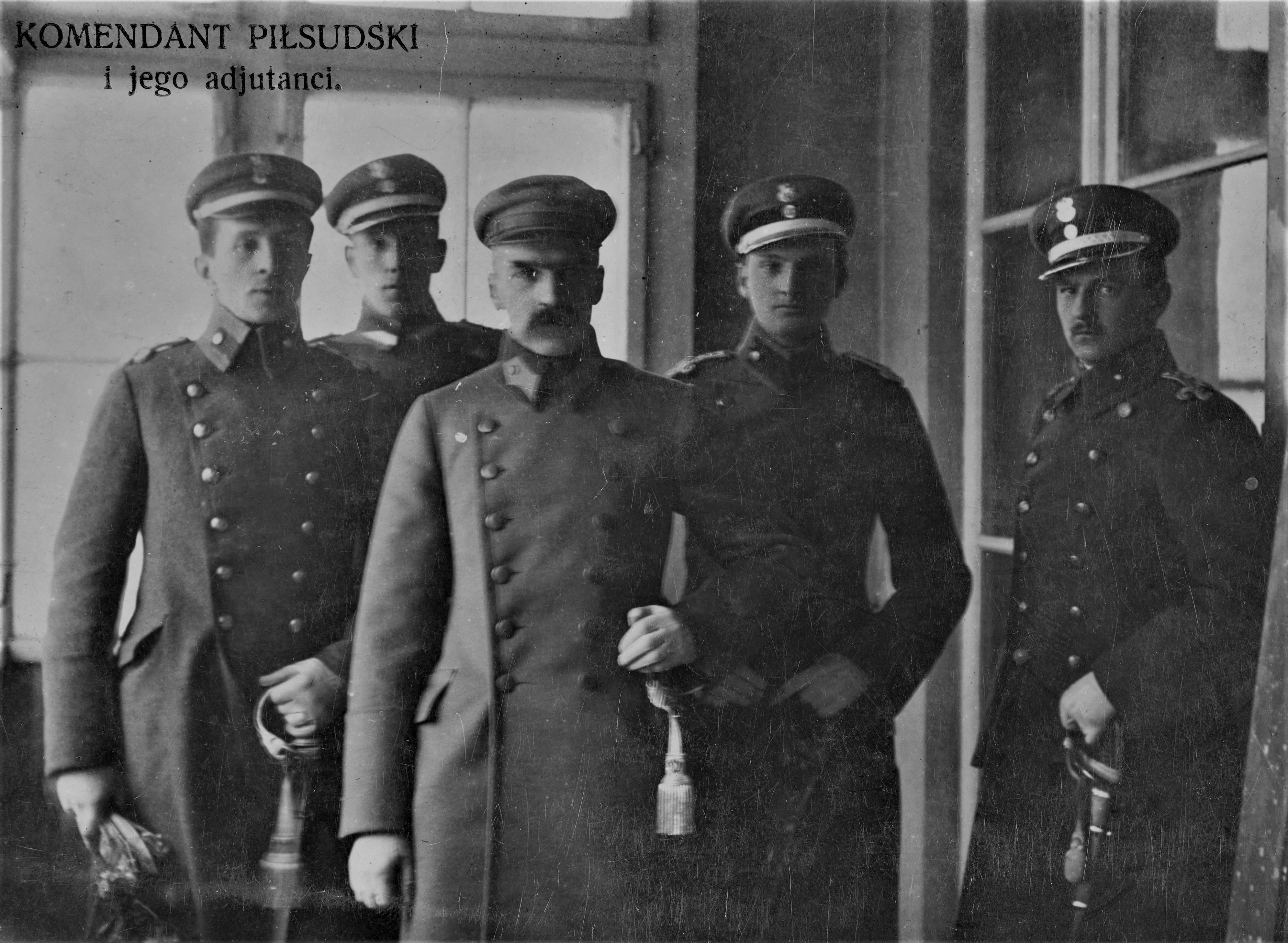 Komendant Piłsudski i jego adjutanci. share Podziel się facebook google + twitter linkedin clipboard envelope print quote picture add × Cytowane źródła Cytowanie źródła on-line, czyli Internetowego Polskiego Słownika Biograficznego Komendant Piłsudski i jego adjutanci., [online] Warszawa: Narodowy Instytut Audiowizualny [dostęp 27.02.2026]. Dostępny w internecie: http://www.biogramy.pl/a/foto/komendant-pilsudski-i-jego-adjutanci Cytowanie wydania drukowanego, czyli Polskiego Słownika Biograficznego , Komendant Piłsudski i jego adjutanci., [w:] Polski słownik biograficzny, t. , IPSBID: ipsb-fo-107362 × Wyślij link do strony E-mail odbiorcy wiadomości: To pole jest wymaganeWpisz poprawny adres e-mail Twój adres e-mail: To pole jest wymaganeWpisz poprawny adres e-mail Podgląd wiadomości, która zostanie wysłana: Witaj, [Tutaj podany Twój e-mail] poleca Ci treść z iPSB (internetowym Polskim Słowniku Biograficznym) Komendant Piłsudski i jego adjutanci. × Dodaj do kolekcji wybierz kolekcję, do której chcesz dodać ten artykuł: lub wpisz nazwę nowej kolekcji, do której chcesz dodać ten artykuł: : To pole jest wymagane Dodaj do kolekcji Wybierz kolekcję Swoje kolekcje znajdziesz w profilu. Wystarczy kliknąć ikonę zębatego koła w górnym prawym rogu. Możesz je zobaczyć tu: moje kolekcje. × Dodaj do kolekcji Element został dodany do Twojej kolekcji. Swoje kolekcje możesz zobaczyć tu: moje kolekcje. × Dodaj do kolekcji Aby dodawać materiały do kolekcji musisz się zalogować. OPIS POSTACI POWIąZANE Na zdjęciu widoczni są Bolesław Wieniawa-Długoszowski, Czesław Świrski, Józef Piłsudski, Karol Durski-Trzaska i Kazimierz Stamirowski. Fotografia z 1918 r. Postaci powiązane Kazimierz Stamirowski 1884-02-06 - 1943-10-11 pułkownik Wojska Polskiego Bolesław Ignacy Długoszowski-Wieniawa 1881-07-22 - 1942-07-01 dyplomata Czesław Świrski 1885-07-19 - 1973-02-04 bojowiec socjalistyczny Józef Klemens Piłsudski 1867-12-05 - 1935-05-12 marszałek Polski więcej >> Zobacz zdjęcie w najwyższej jakości Źródło