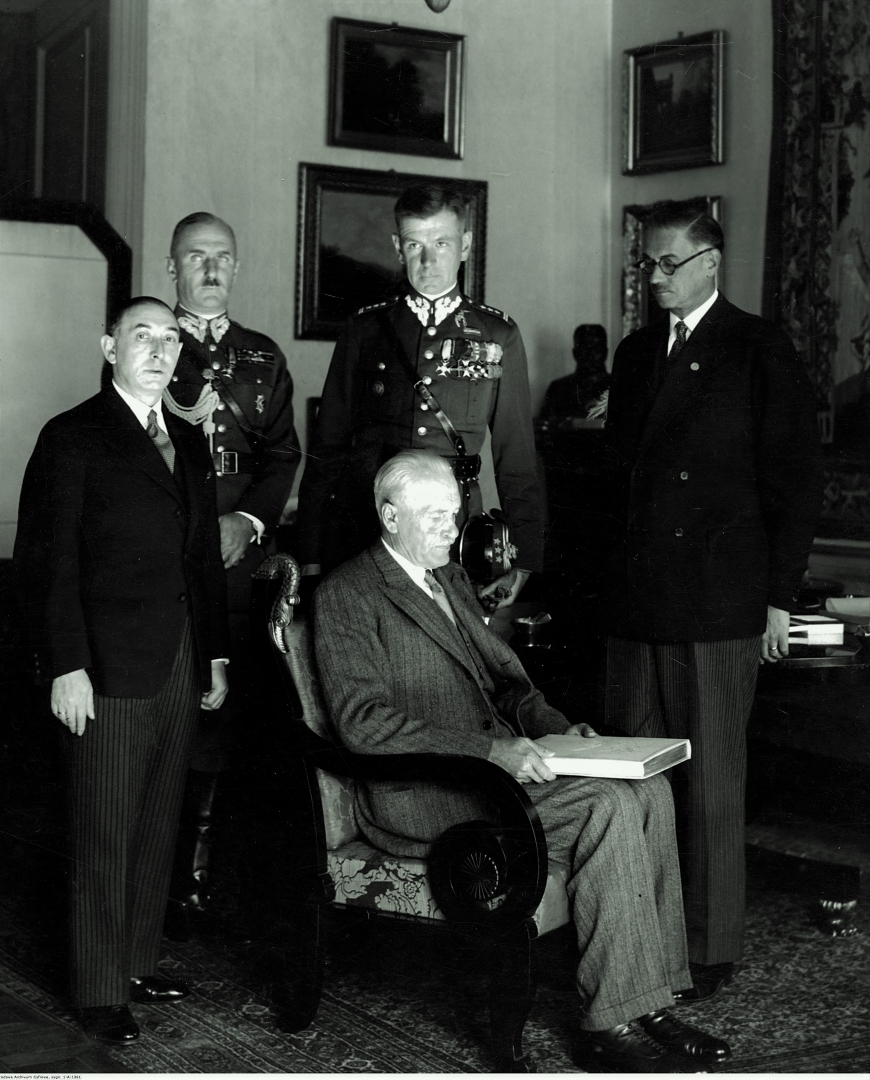 , Komitet Budowy " Pomnika Lotnika " na audiencji u prezydenta RP Ignacego Mościckiego w zwiazku z wręczeniem prezydentowi księgi pamiątkowej ku czci poległych lotników, 3.10.1933 r., [w:] Polski słownik biograficzny, t. ,