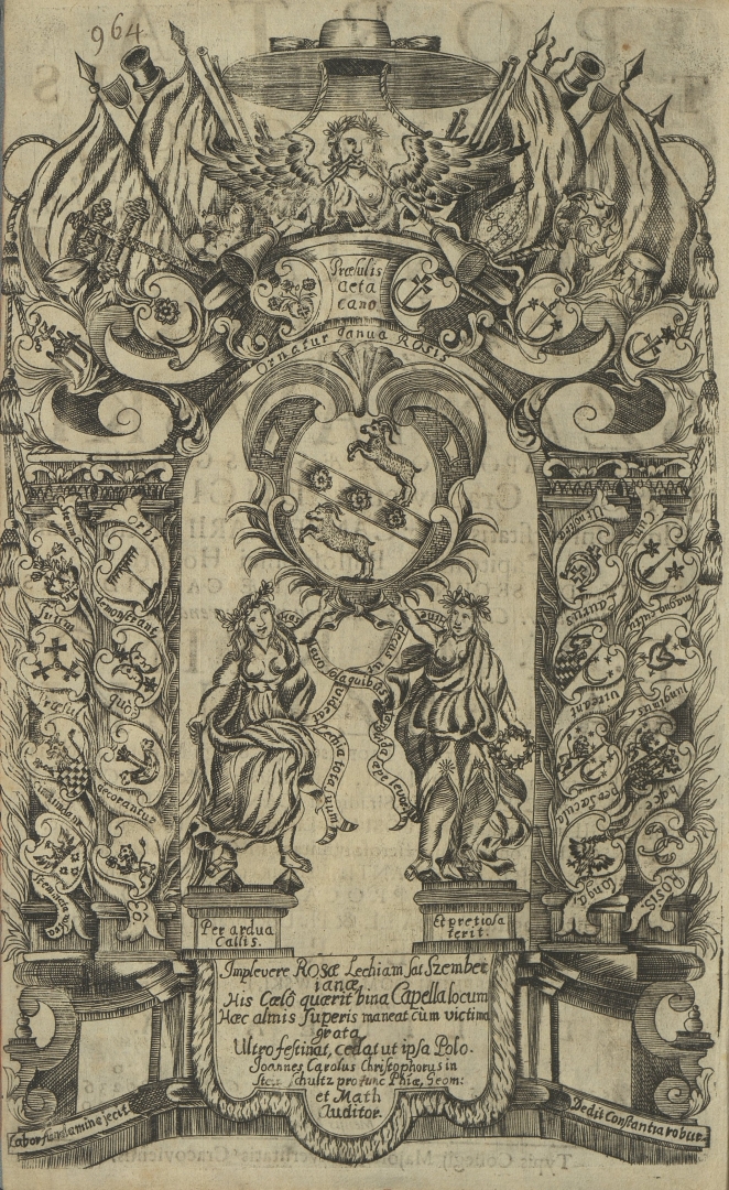, Kompozycja heraldyczna której głównym elementem jest herb rodziny Szembeków, w druku z roku 1725 związanym z Krzysztofem Antonim Szembekiem, wówczas Biskupem Włocławskim., [w:] Polski słownik biograficzny, t. ,