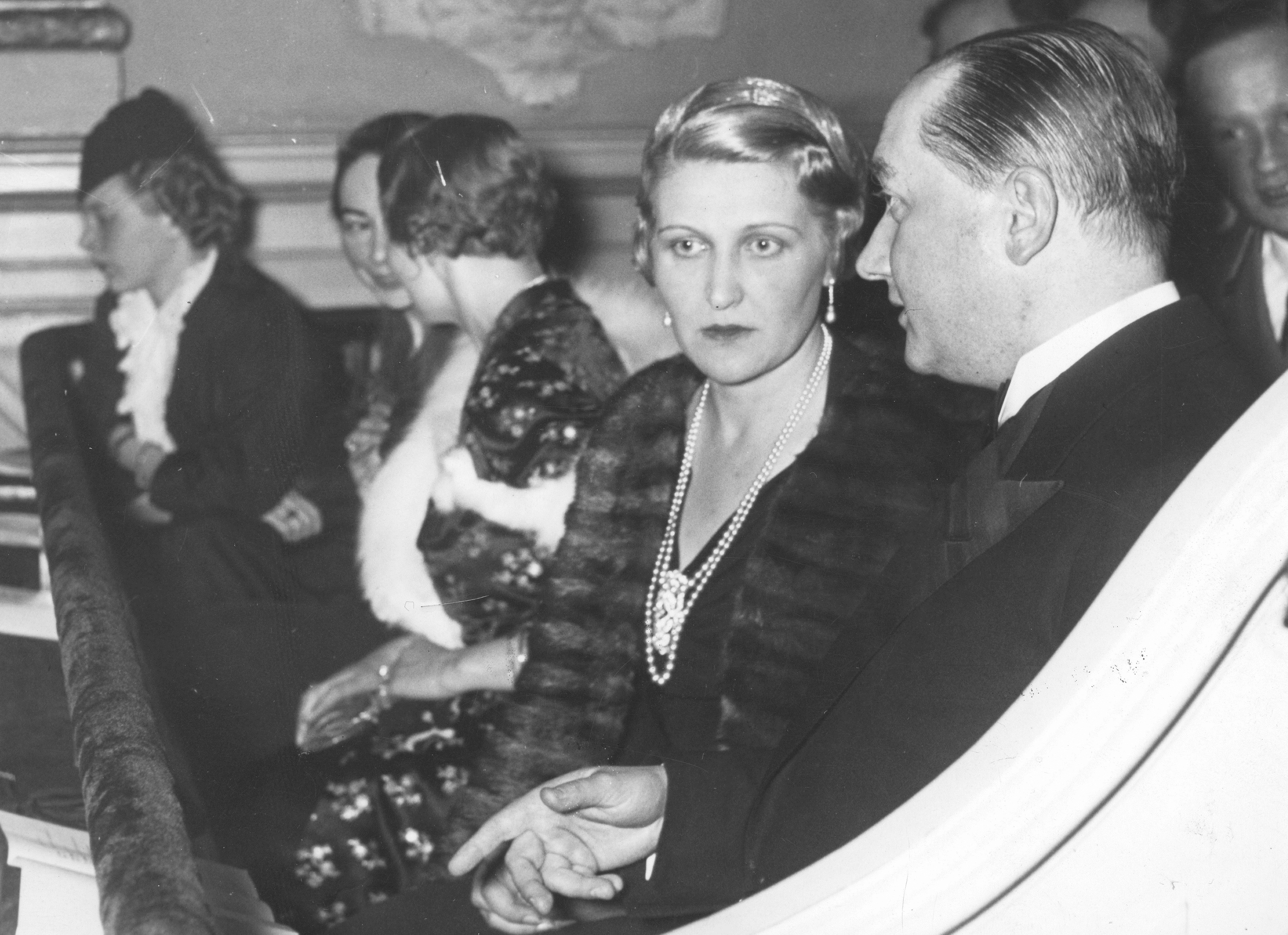 Publiczność w loży podczas koncertu. Na pierwszym planie widoczny ambasador RP w Niemczech Józef Lipski podczas rozmowy z żoną Josepha Goebbelsa Magdą Goebbels.