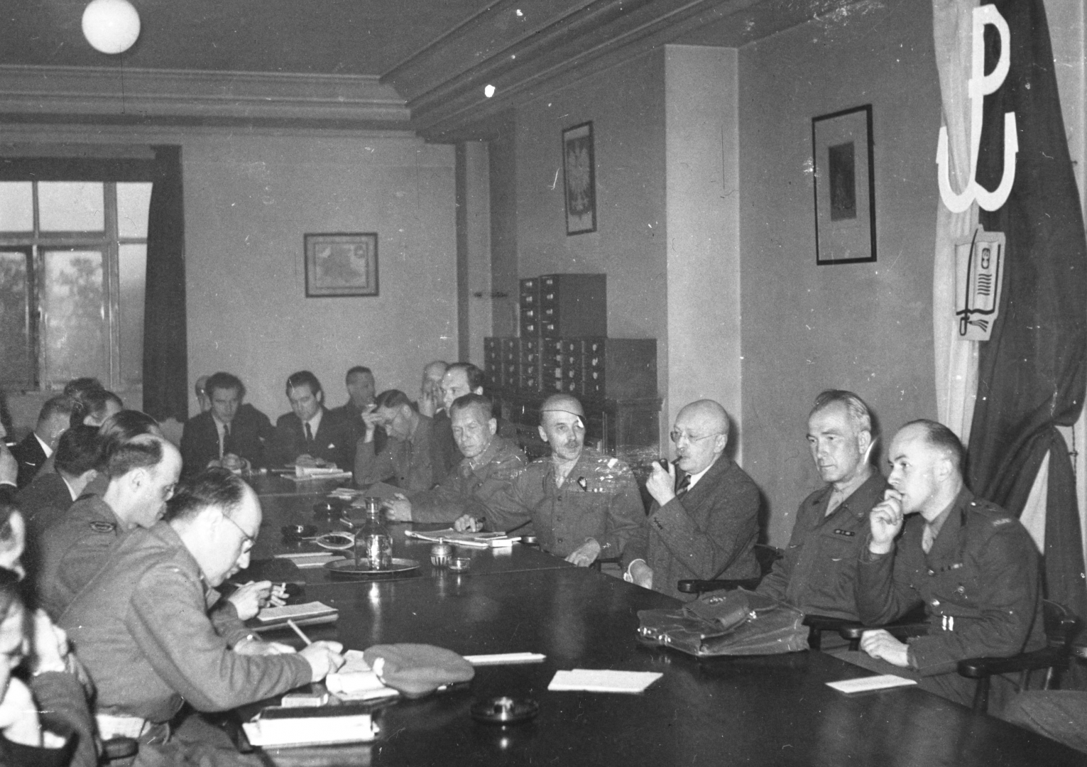 Konferencja prasowa Naczelnego Wodza gen. Tadeusz Bora-Komorowskiego, 19.05.1945 r., [online] Warszawa: Narodowy Instytut Audiowizualny [dostęp 13.04.2026]. Dostępny w internecie: http://www.biogramy.pl/a/foto/konferencja-prasowa-naczelnego-wodza-gen-tadeusz-bora-komorowskiego-19051945-r-1