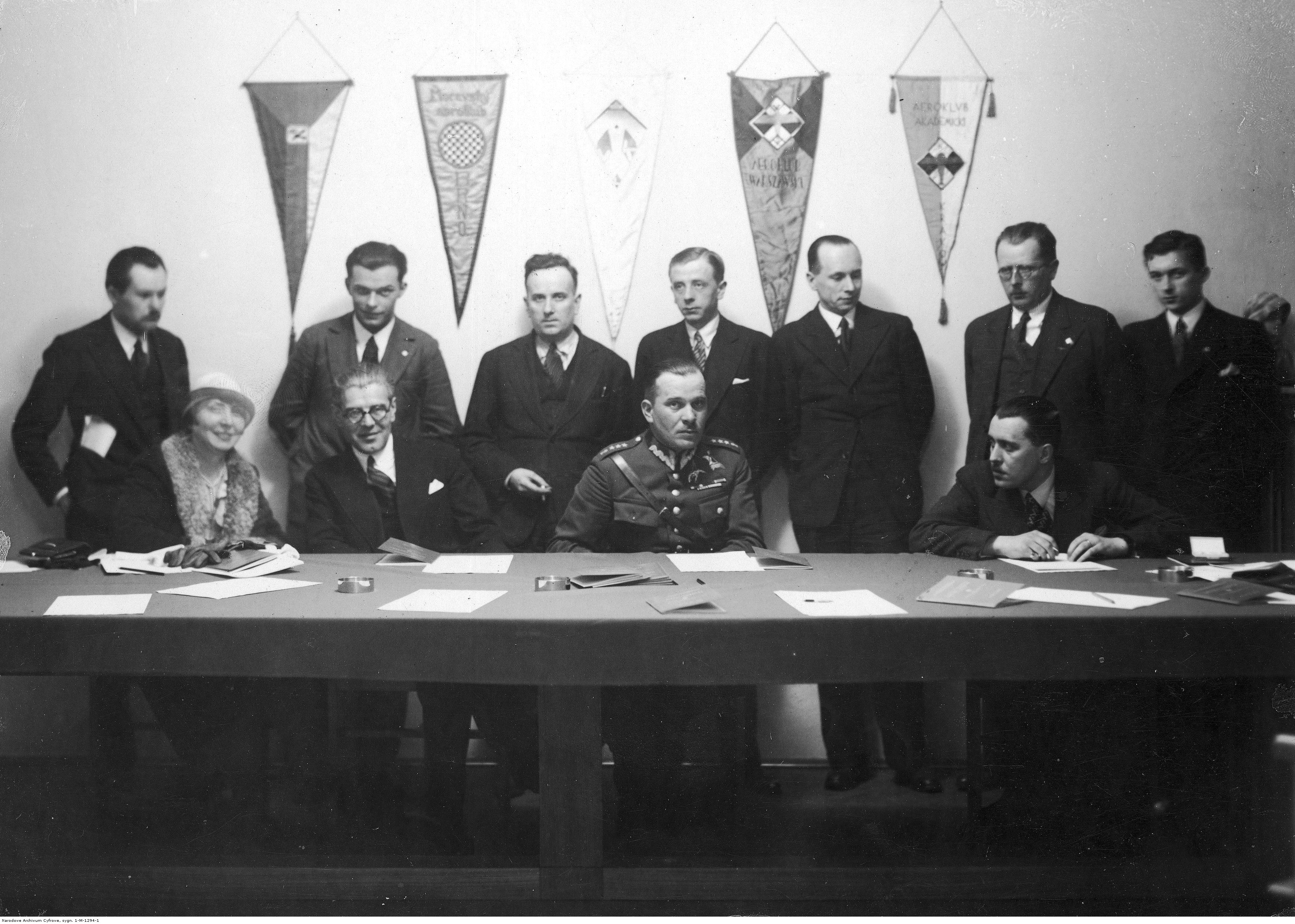 Konferencja prasowa w Aeroklubie RP w czasie II Międzynarodowego Meetingu Lotniczego w Warszawie w kwietniu 1933 r., [online] Warszawa: Narodowy Instytut Audiowizualny [dostęp 28.02.2026]. Dostępny w internecie: http://www.biogramy.pl/a/foto/konferencja-prasowa-w-aeroklubie-rp-w-czasie-ii-miedzynarodowego-meetingu-lotniczego-w-warszawie-w-kwietniu-1933-r