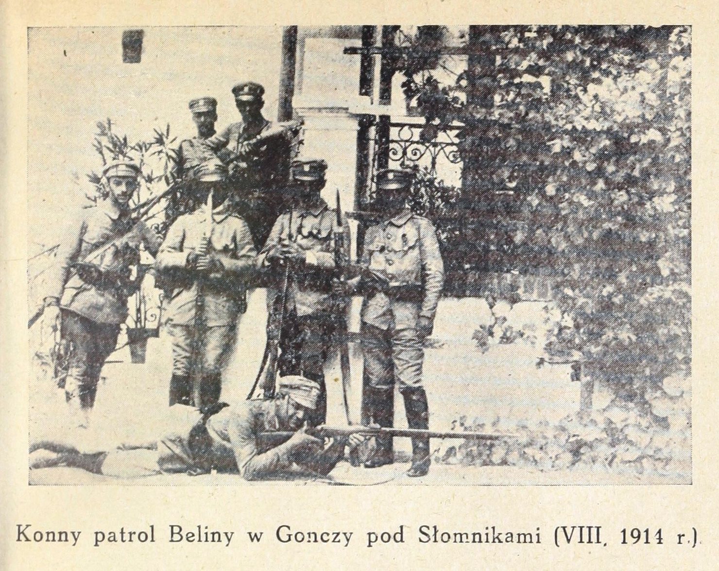Konny patrol Beliny w Gonczy pod Słomnikami (VIII. 1914 r.), [online] Warszawa: Narodowy Instytut Audiowizualny [dostęp 28.02.2026]. Dostępny w internecie: http://www.biogramy.pl/a/foto/konny-patrol-beliny-w-gonczy-pod-slomnikami-viii-1914-r
