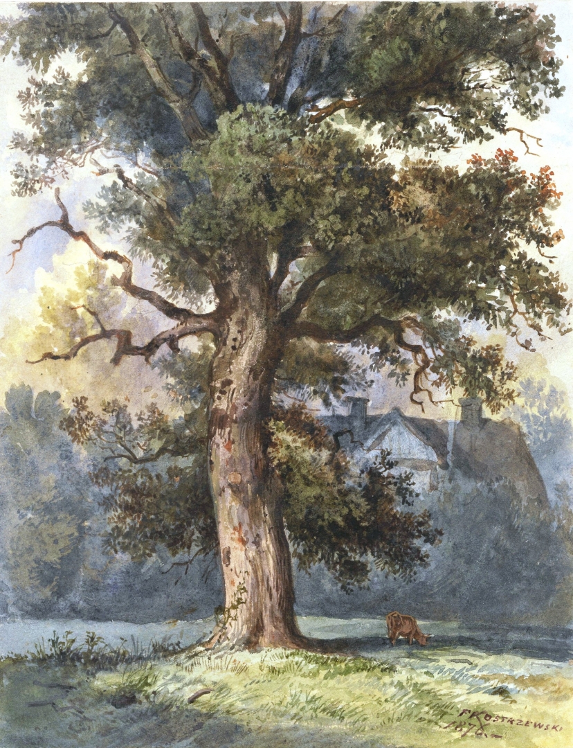 , "Krajobraz z dębem i domami w głębi" Franciszka Kostrzewskiego., [w:] Polski słownik biograficzny, t. ,