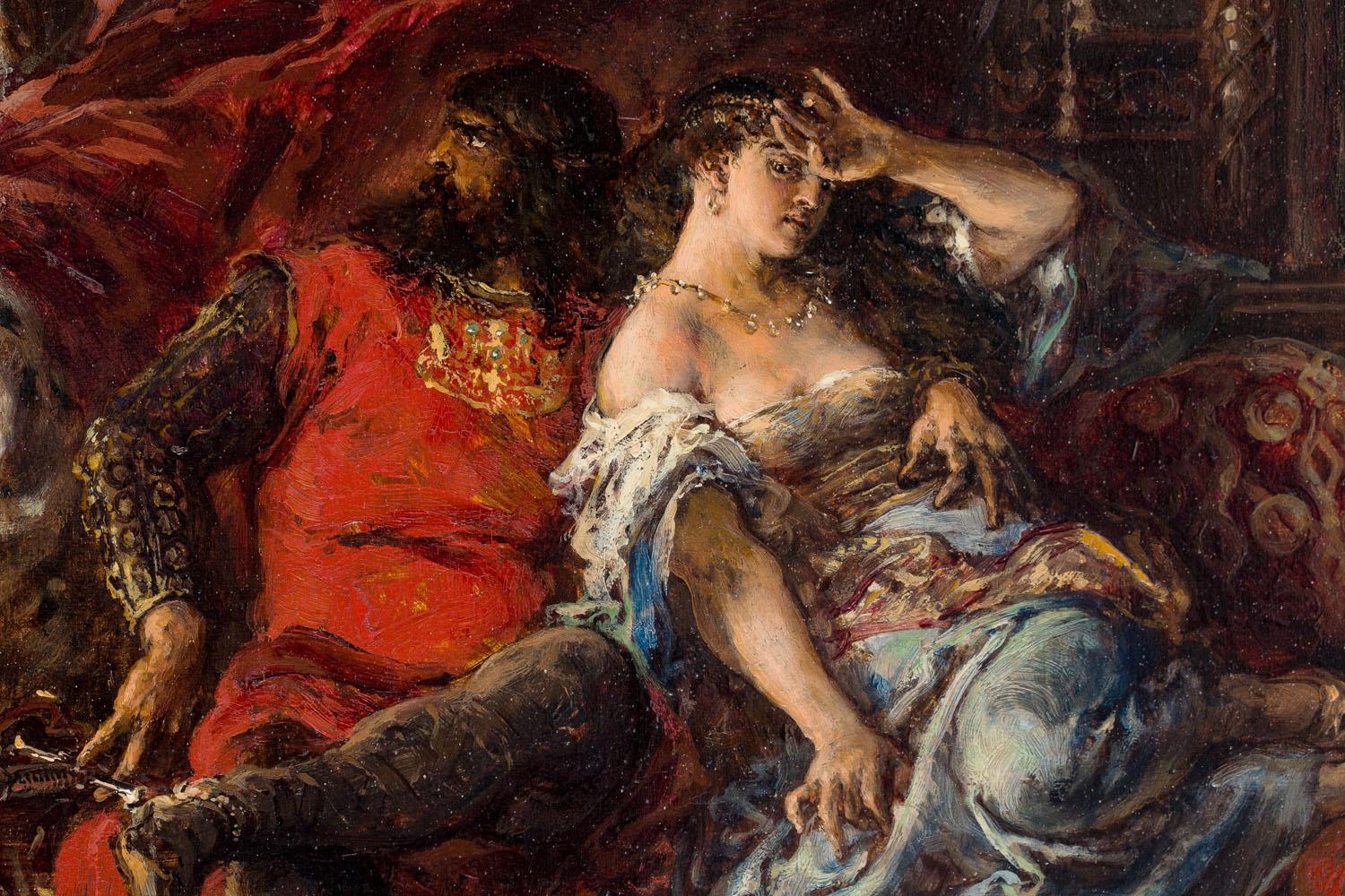 Jest to fragment z prawej części obrazu Mistrza z 1877 roku, na której widać króla groźnie spoglądającego na biskupa i jego kochankę znudzoną napomnieniami duchownego. Według legendy romans króla z piękną Krystyną był jedną z przyczyn katastrofalnego konfliktu między biskupem a władcą, który ostatecznie doprowadził do śmierci pierwszego i utraty korony przez drugiego. Tę wersję przyczyn wiekopomnego sporu powtórzyli w swoich powieściach m.in. Józef Ignacy Kraszewski i Karol Bunsch.